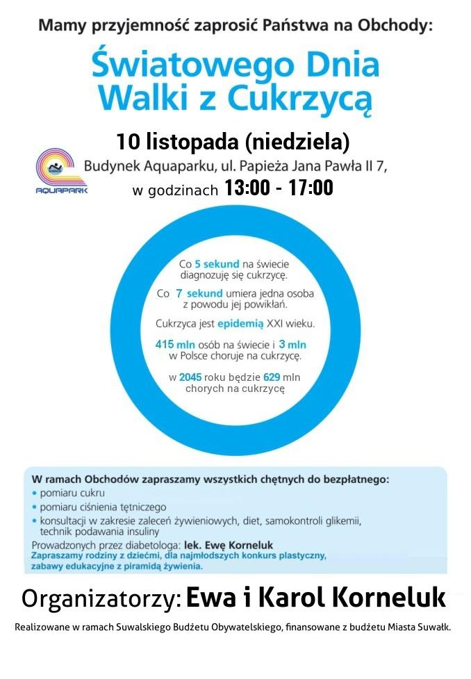 Celem akcji jest przebadanie jak najwiÄ™kszej grupy pacjentów z terenu SuwaÅ‚k w celu zdiagnozowania cukrzycy oraz zwiÄ™kszenie Å›wiadomoÅ›ci spoÅ‚eczeÅ„stwa odnoÅ›nie przyczyn, objawów, sposobu leczenia i powikÅ‚aÅ„ zwiÄ…zanych z cukrzycÄ…. Organizacja Narodów Zjednoczonych uznaÅ‚a cukrzycÄ™ za pierwszÄ… niezakaźnÄ… epidemiÄ™.