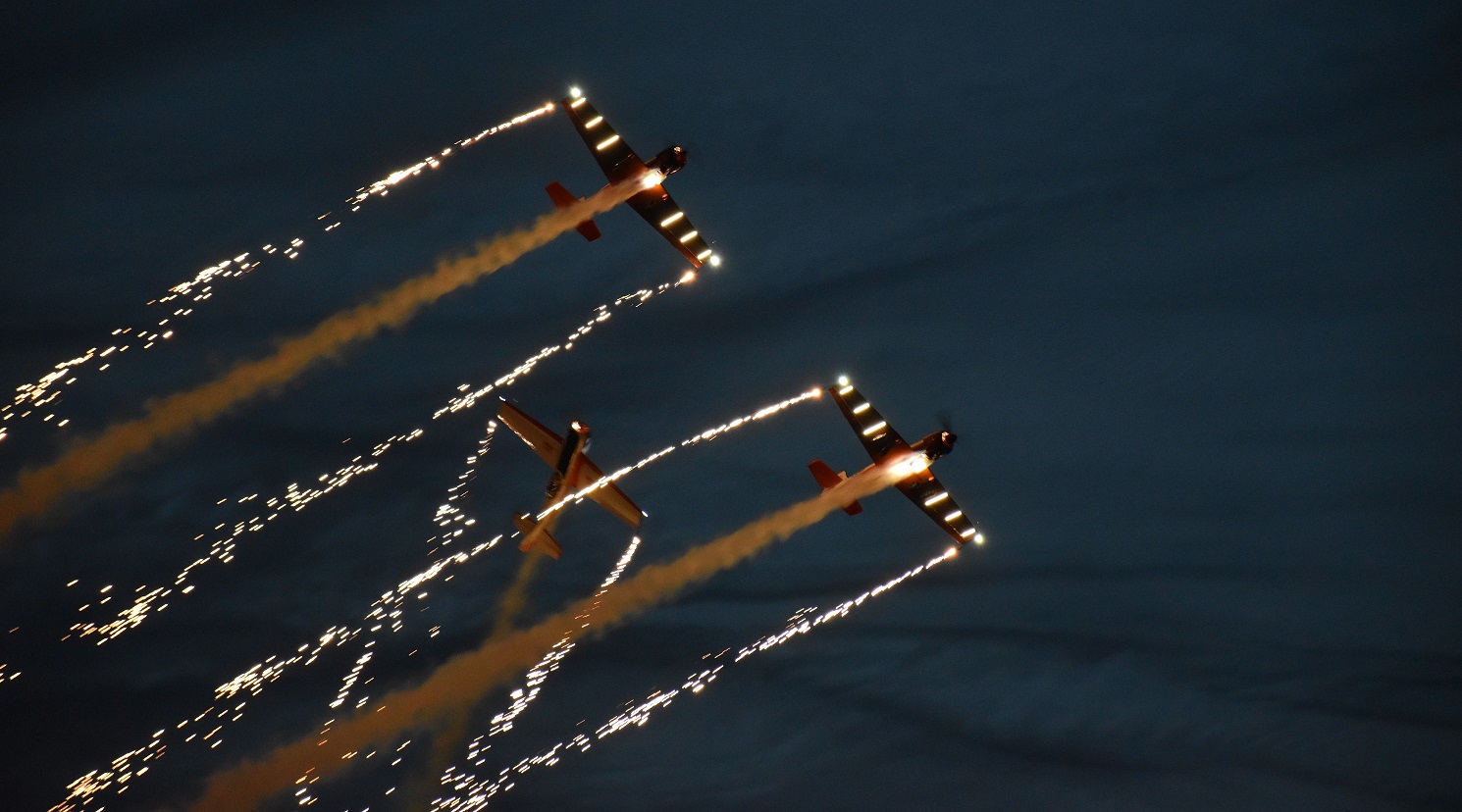 Zachwycona byÅ‚a ona dziennymi i nocnymi pokazami skoczków spadochronowych, a przede wszystkim pilotów szybowców i samolotów, a także speców od pirotechniki. Swój kunszt zademonstrowali siedmiokrotny mistrz Å›wiata w akrobacji szybowcowej, emerytowany pilot PLL LOT, prezes Aeroklubu Polskiego Jerzy Makula w szybowcu SWIFT F1, czÅ‚onkowie Orlen Grupy Akrobacyjnej Å»elazny, litewscy piloci i wÄ™gierscy piloci w YAK 50 i YAK 52, sÅ‚owaccy piloci z Retro Sky Team w samolotach Zlin. Olbrzymie zaciekawienie budziÅ‚ odrzutowy MIG 15, robiÄ…cy furorÄ™ w czasach II wojny North American Harvard IIB, czy Å›migÅ‚owiec BO 105.