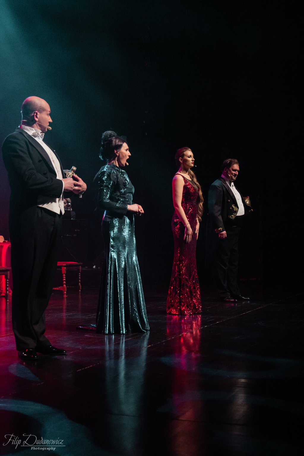 W pierwszej części wieczoru można byÅ‚o usÅ‚yszeć “hity klasycznej listy przebojów”, miÄ™dzy innymi kuplety torreadora z “Carmen” G. Bizeta, “La Donna e Mobile” z “Rigoletta” czy najbardziej znany muzyczny toast “Libiamo” z “Traviaty” G. Verdiego oraz “Gdybym byÅ‚ bogaczem” ze “Skrzypka na dachu”. Później wybrzmiaÅ‚y klasyczne przeboje aranżowane rozrywkowo i z dużym przymrużeniem oka.