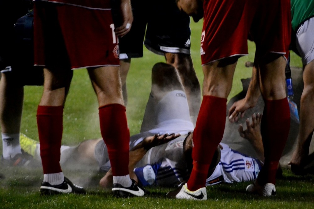 Fatalnej w skutkach kontuzji 30-letni Tomasz Tuttas doznał podczas piątkowego meczu z Bytovią. Wystartował do zbyt lekko podanej przez obrońcę gości piłki i zderzył się z bramkarzem Bytovii Mateuszem Oszmiańcem. Z boiska został zniesiony na noszach, karetka odwiozła go do szpitala.