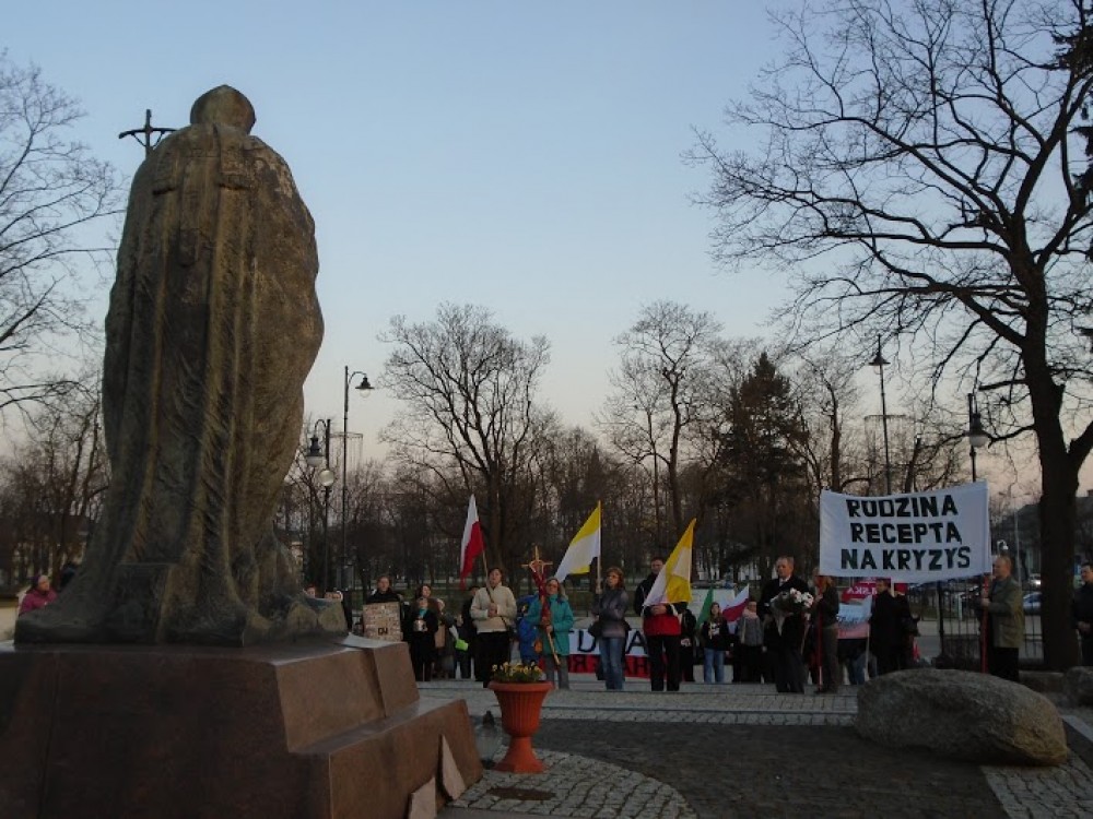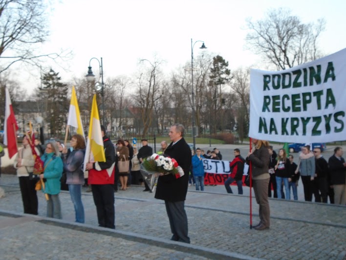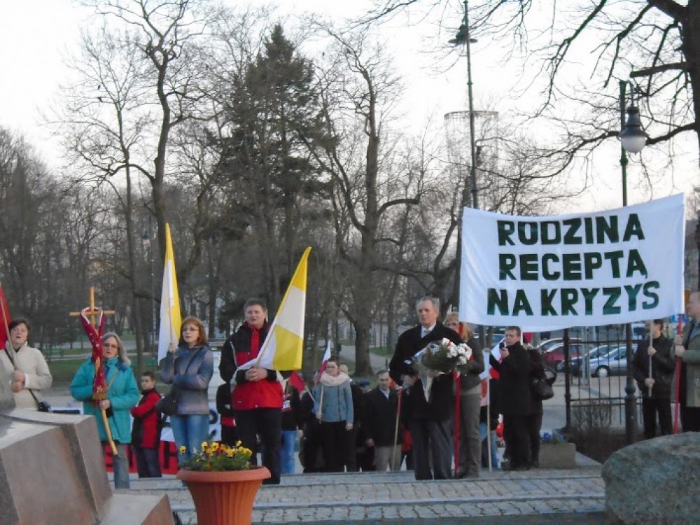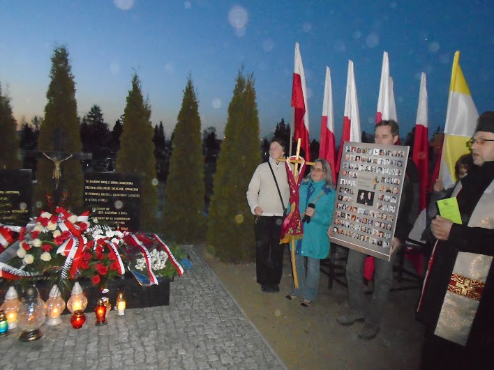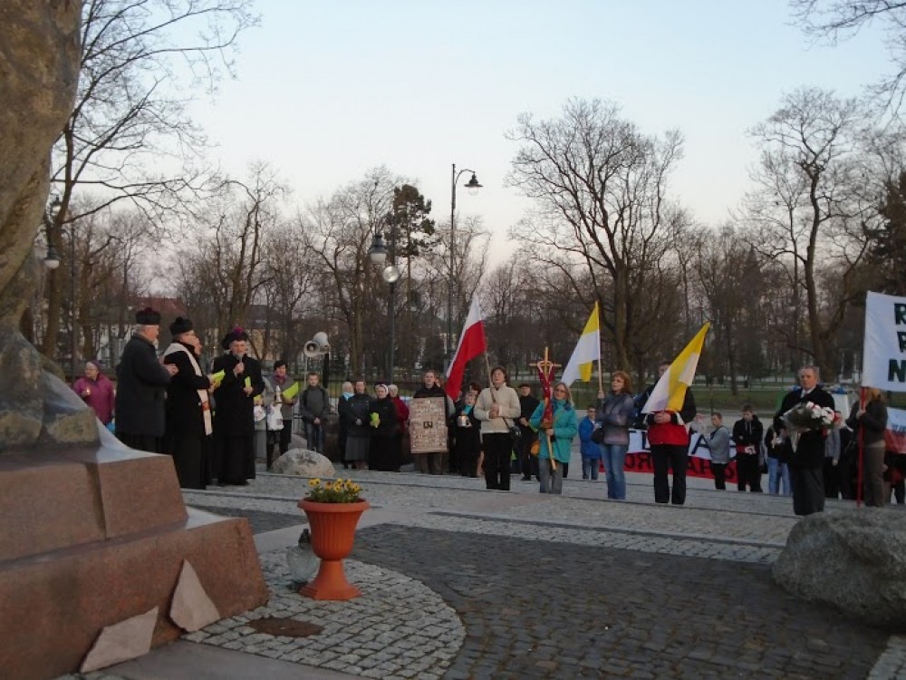 Pod pomnikiem ofiar katastrofy smoleÅ„skiej, odmówiono koronkÄ™ do MiÅ‚osierdzia Bożego, zÅ‚ożono wiÄ…zanki kwiatów i zapalono znicze. KsiÄ…dz Jarema Sykulski odczytaÅ‚ peÅ‚nÄ… listÄ™ ofiar tragedii sprzed piÄ™ciu lat. DziÄ™kujÄ…c przybyÅ‚ym zauważyÅ‚, że pamięć o tamtych dniach jest nadal aktem odwagi.