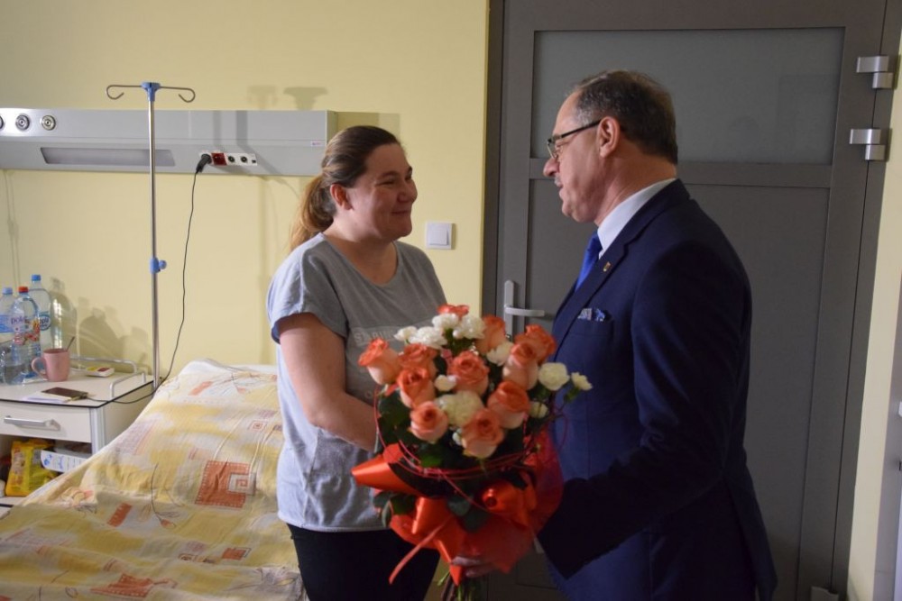W środę, 2 stycznia w szpitalu wojewódzkim Czesław Renkiewicz, prezydent Suwałk złożył gratulacje matce pierwszego suwalskiego dziecka urodzonego w nowym 2019 roku.