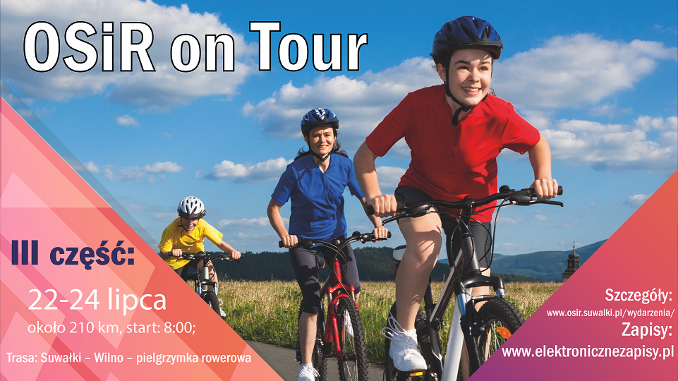 W dniach 22 – 24 lipca odbędzie się trzecia tegoroczna wycieczka z cyklu „OSiR On Tour”, której celem będzie Wilno. Będzie to jednocześnie piąta Pielgrzymka Rowerowa do Wilna, której pierwsza edycja odbyła się w 2015 roku. Trasa zostanie podzielona na trzy odcinki, z dwoma noclegami na Litwie (pierwszy nad przepięknym jeziorem Metele – nocleg w namiotach, drugi w miejscowości Biała Waka – nocleg w szkole).