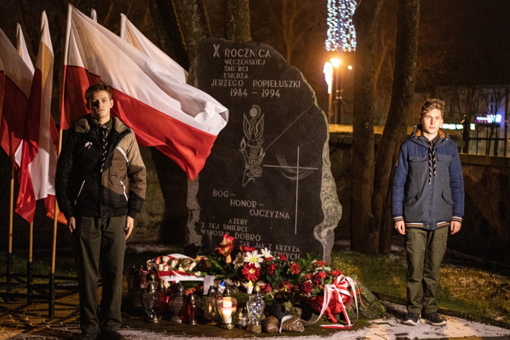 Po nabożeÅ„stwie, uczestnicy obchodów zÅ‚ożą kwiaty pod obeliskiem bÅ‚. ks. Jerzego PopieÅ‚uszki, pod pomnikiem Å›w. Jana PawÅ‚a II oraz pod DÄ™bem WolnoÅ›ci w Parku Konstytucji 3 Maja.