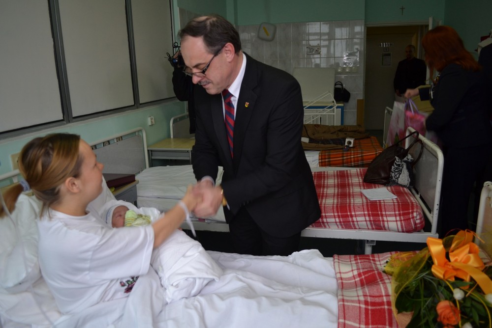 DziÅ› szczęśliwÄ…, mÅ‚odÄ… mamÄ™ odwiedziÅ‚ prezydent SuwaÅ‚k. PrzekazaÅ‚ jej wyprawkÄ™ dla dziecka, m.in. wózek, ubranka i akcesoria dla niemowlÄ…t. A także pogratulowaÅ‚, wreczyÅ‚ kwiaty i życzyÅ‚ zdrowia.