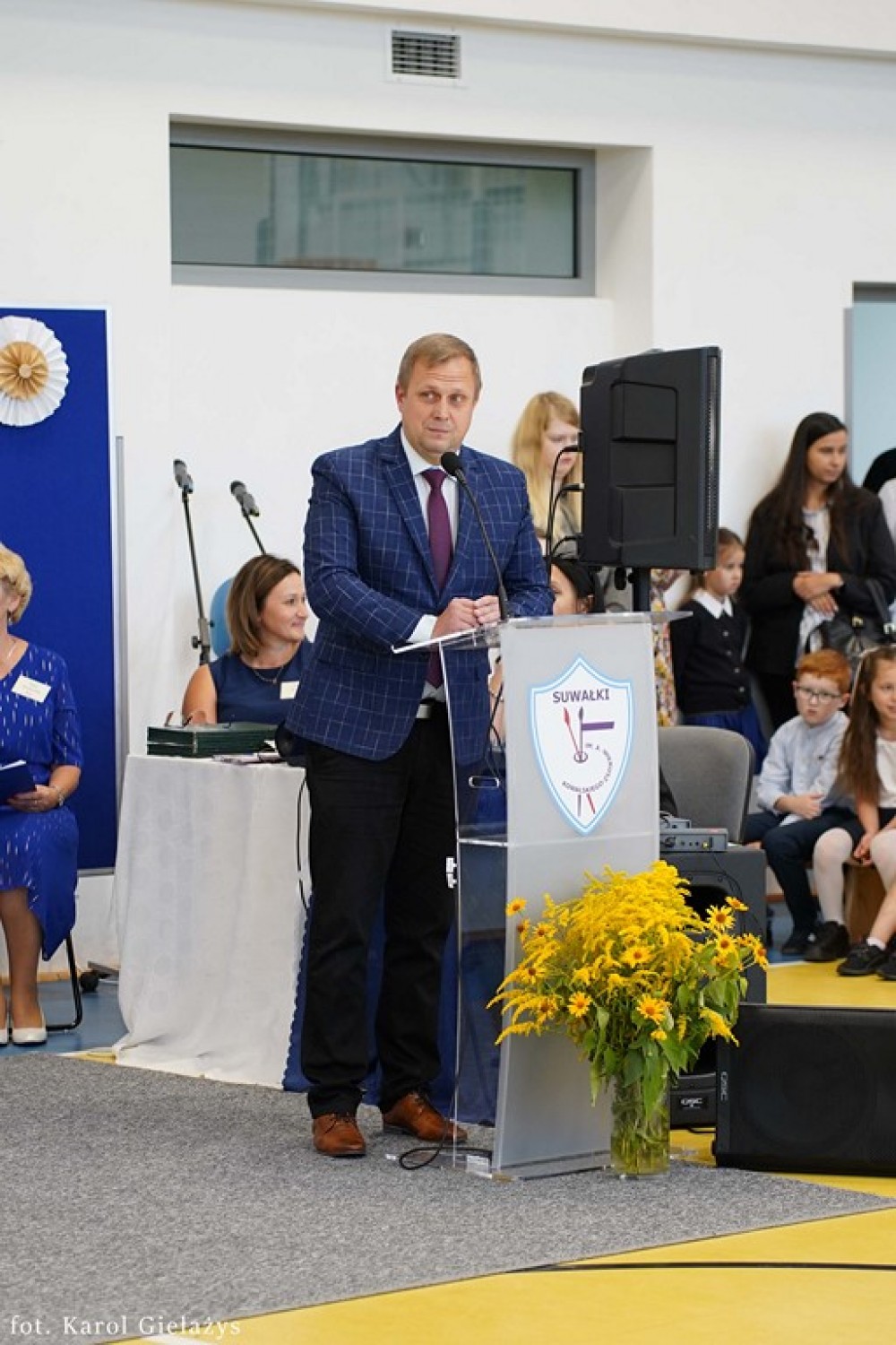 Jak już dzisiaj informowaliśmy, w suwalskich szkołach podstawowych naukę rozpoczyna 794 pierwszoklasistów. W Szkole Podstawowej nr 5 im. Alfreda Wierusz-Kowalskiego uczyć się oni będą w sześciu oddziałach – od klasy I A do I F.