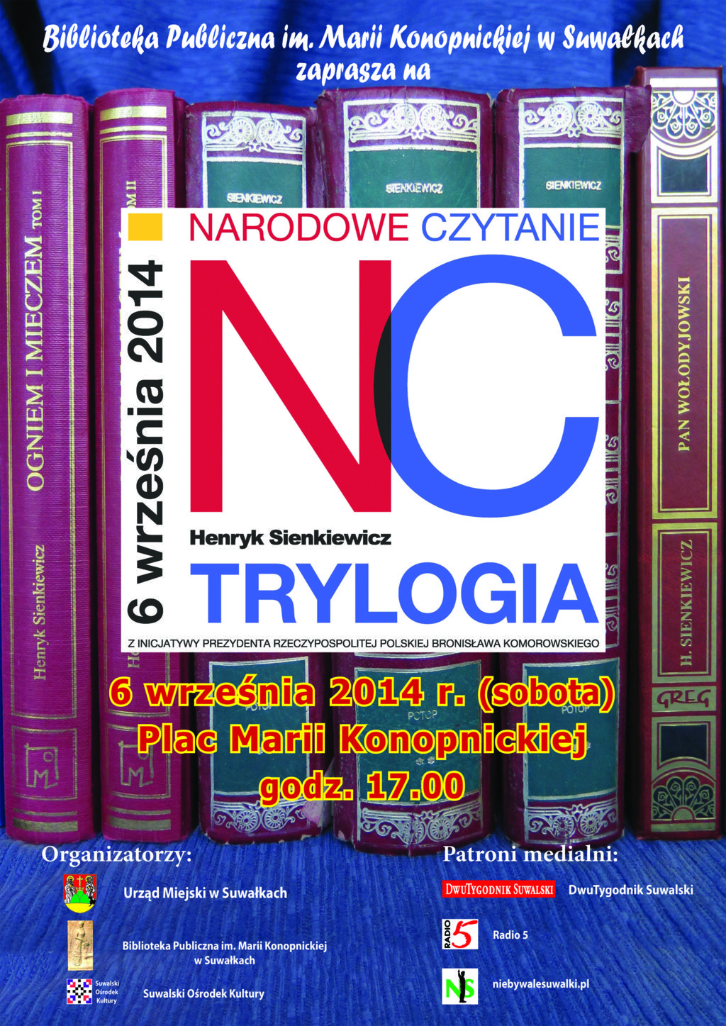 Biblioteka Publiczna im. Marii Konopnickiej w Suwałkach zaprasza na wspólne czytanie „Trylogii” Henryka Sienkiewicza organizowanego w ramach ogólnopolskiej akcji „Narodowe Czytanie” zainicjowanej przez Prezydenta Rzeczpospolitej Polskiej Bronisława Komorowskiego.