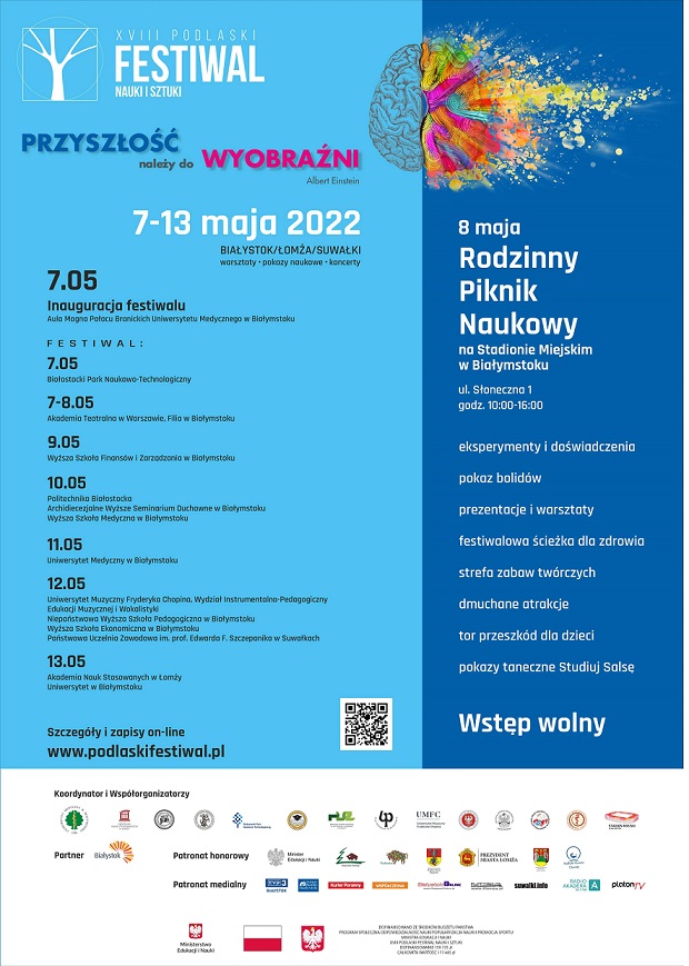 Tegoroczny Festiwal wsparciem i patronatem objął Minister Edukacji i Nauki, a także Wojewoda Podlaski, Marszałek Województwa Podlaskiego, Podlaski Kurator Oświaty, Prezydent Miasta Białegostoku, Prezydent Miasta Łomży i Prezydent Miasta Suwałki. Już po raz osiemnasty podlaskie uczelnie zapraszają wszystkich mieszkańców naszego regionu do udziału spotkaniach, warsztatach, wykładach czy pokazach. To największa, cykliczna impreza w Polsce północno-wschodniej, popularyzująca naukę i sztukę w sposób bardzo przystępny.