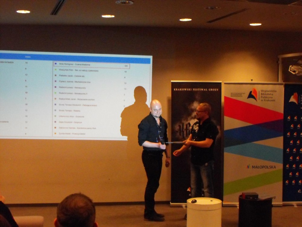 Pięć najlepszych pozycji w danym roku wybrali najpierw internauci oraz członkowie kapituły, w której zasiedli eksperci w dziedzinie literatury grozy. W drugim etapie decydujący głos należał do jury, w skład którego weszli literaturoznawcy ze stopniami doktora i doktora habilitowanego nauk. Na pięciu członków jury aż czterech opowiedziało się za "Grzesznikiem". Warto dodać, że powieść suwalczanina okazała się lepsza m.in. od "Czarnej Madonny" najpopularniejszego polskiego pisarza - Remigiusza Mroza.