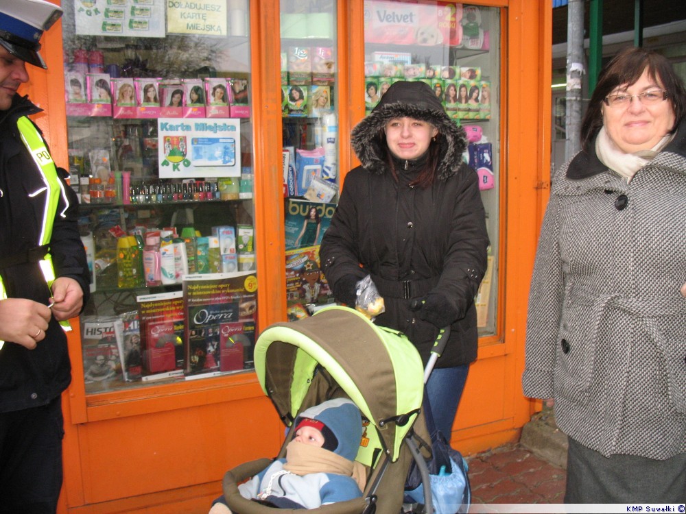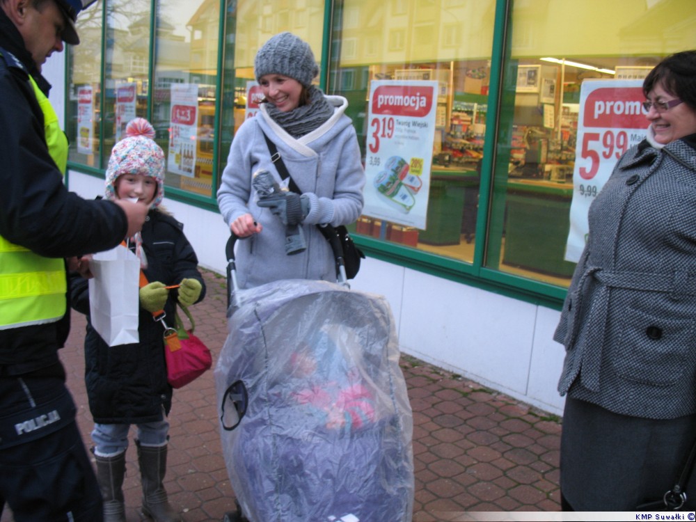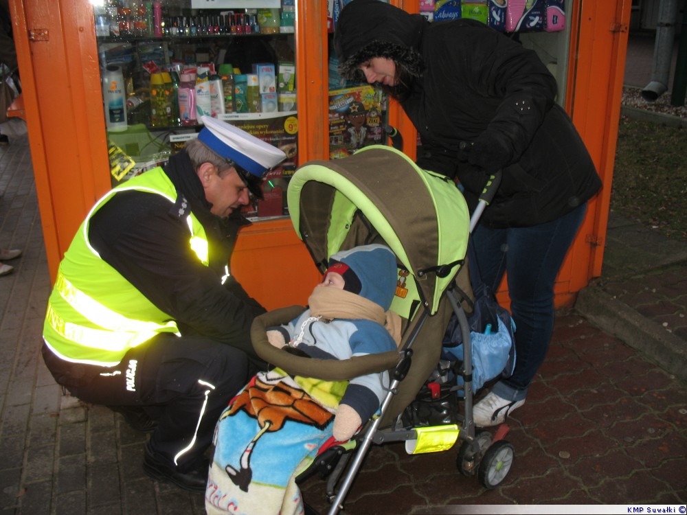 Suwalscy funkcjonariusze wraz z Wojewódzkim Ośrodkiem Ruchu Drogowego i harcerzami prowadzili akcję profilaktyczną „Mamo, tato – oznacz wózek naklejką odblaskową”.