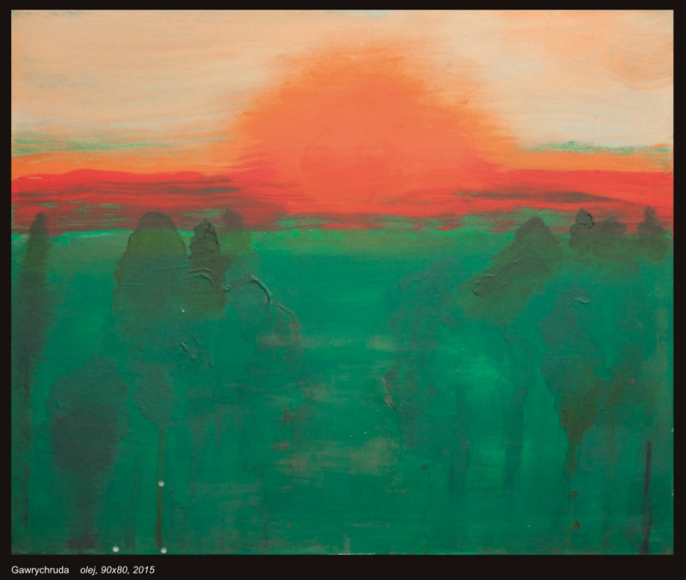 - Dobrze siÄ™ czujÄ™ w wiÄ™kszej przestrzeni pÅ‚ótna, ale zapewne byÅ‚o to też odreagowanie na konieczność tworzenia przedtem ilustracji w maÅ‚ej ska- li. Tamta praca wymagaÅ‚a koncentracji, precyzji, a w malarstwie mogÄ™ być spontaniczna. KierujÄ™ siÄ™ emocjÄ…, instynktem.