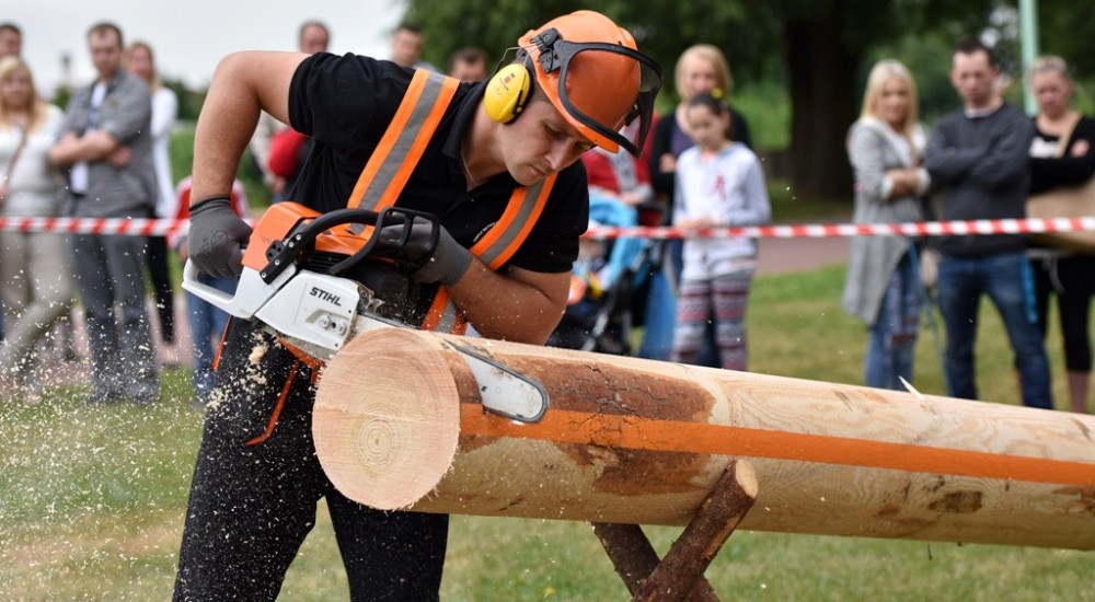 Warkot pił motorowych rozlegał się w niedzielę nad Zalewem Arkadia. Wszystko za sprawą pierwszych międzynarodowych zawodów drwali. Zawodnicy piłowali, cieli i nosili drewno. Najlepszy okazał się Radosław Torchimczyk z Gródka. Publiczność w tym czasie rzucała butem do celu i wbijała gwoździe na czas.