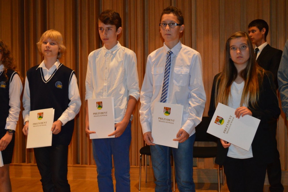 W tym roku stypendium za szczególne osiągnięcia w nauce i sporcie uzyskane w roku szkolnym 2013/2014 otrzymało łącznie 148 uczniów: 76 ze szkół podstawowych, 65 z gimnazjów i 7 ze szkół ponadgimnazjalnych. Stypendia wręczyli Czesław Renkiewicz, prezydent Suwałk i jego zastępca – Marek Buczyński.