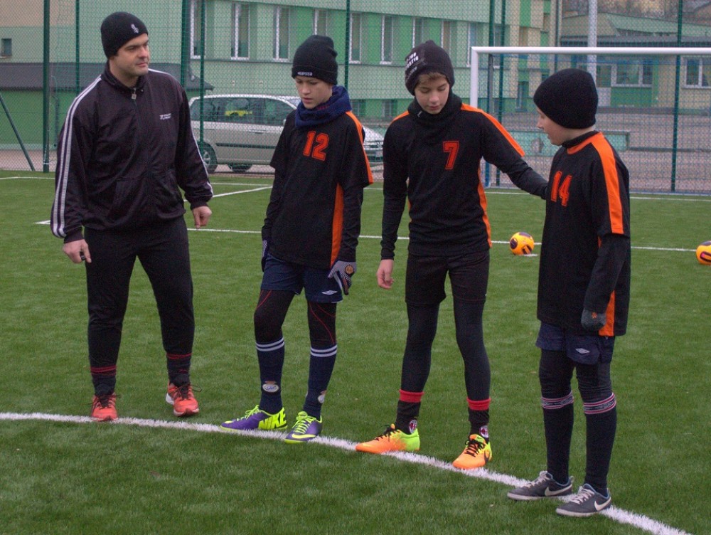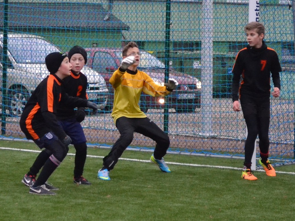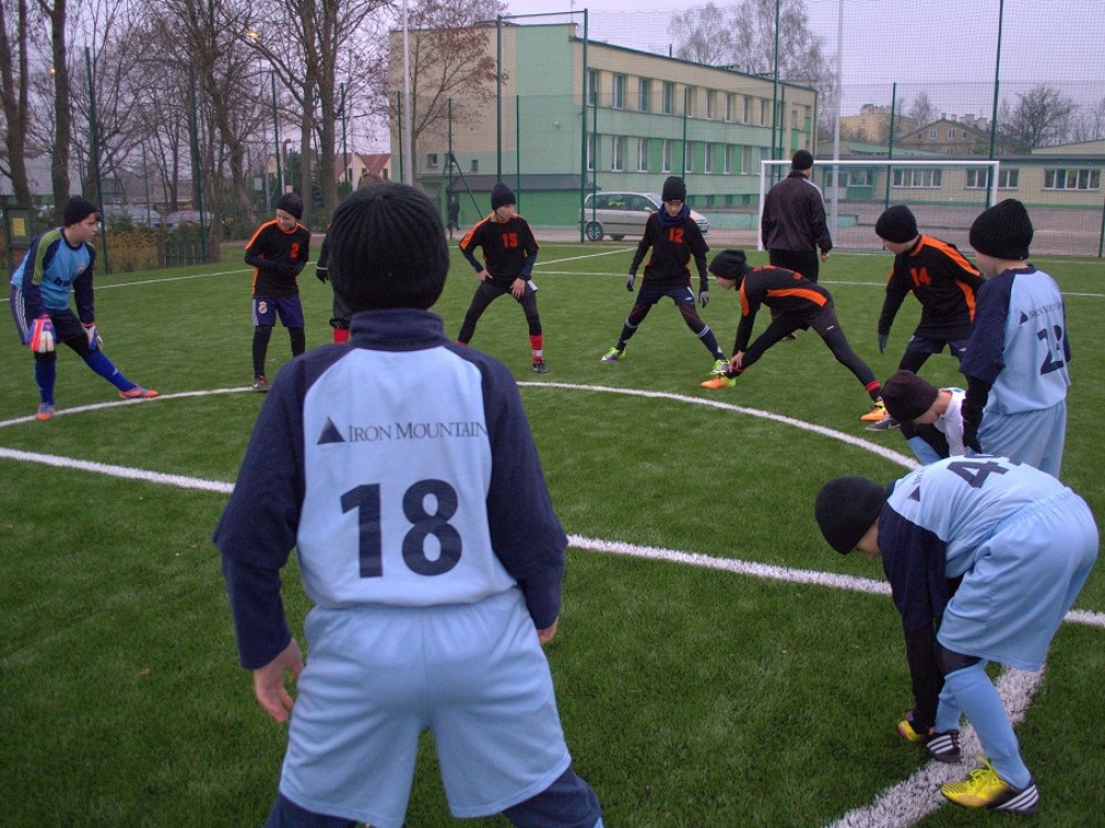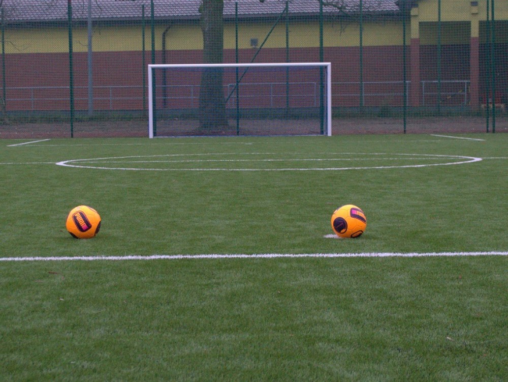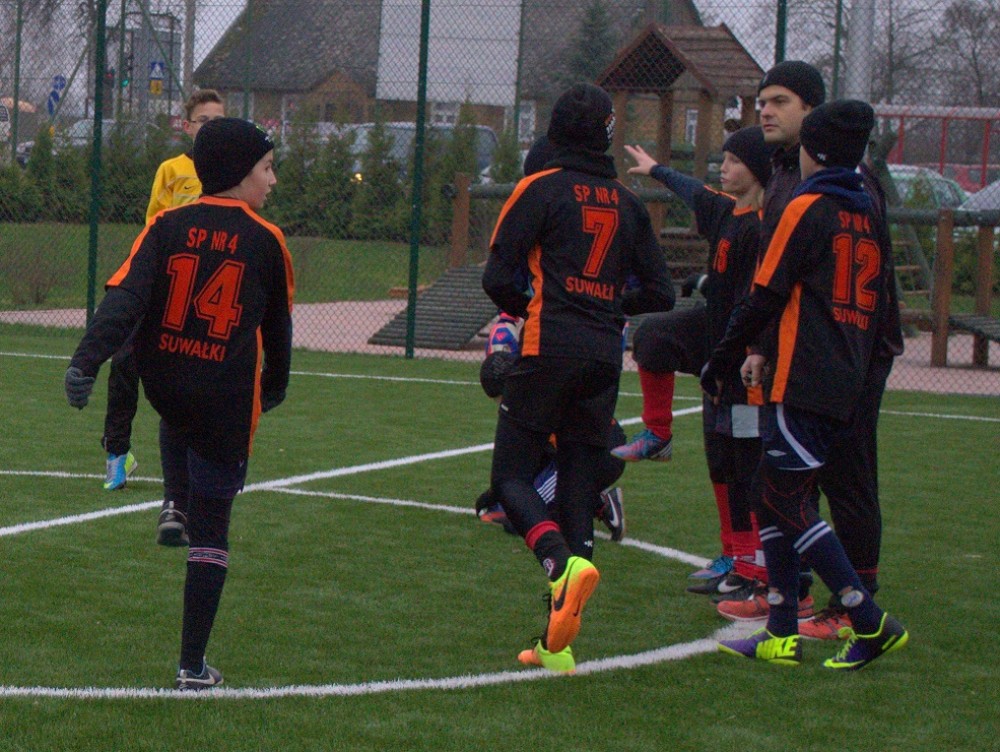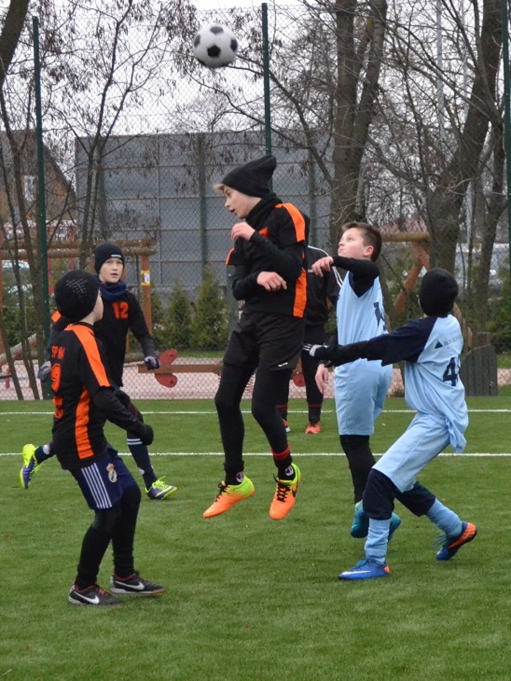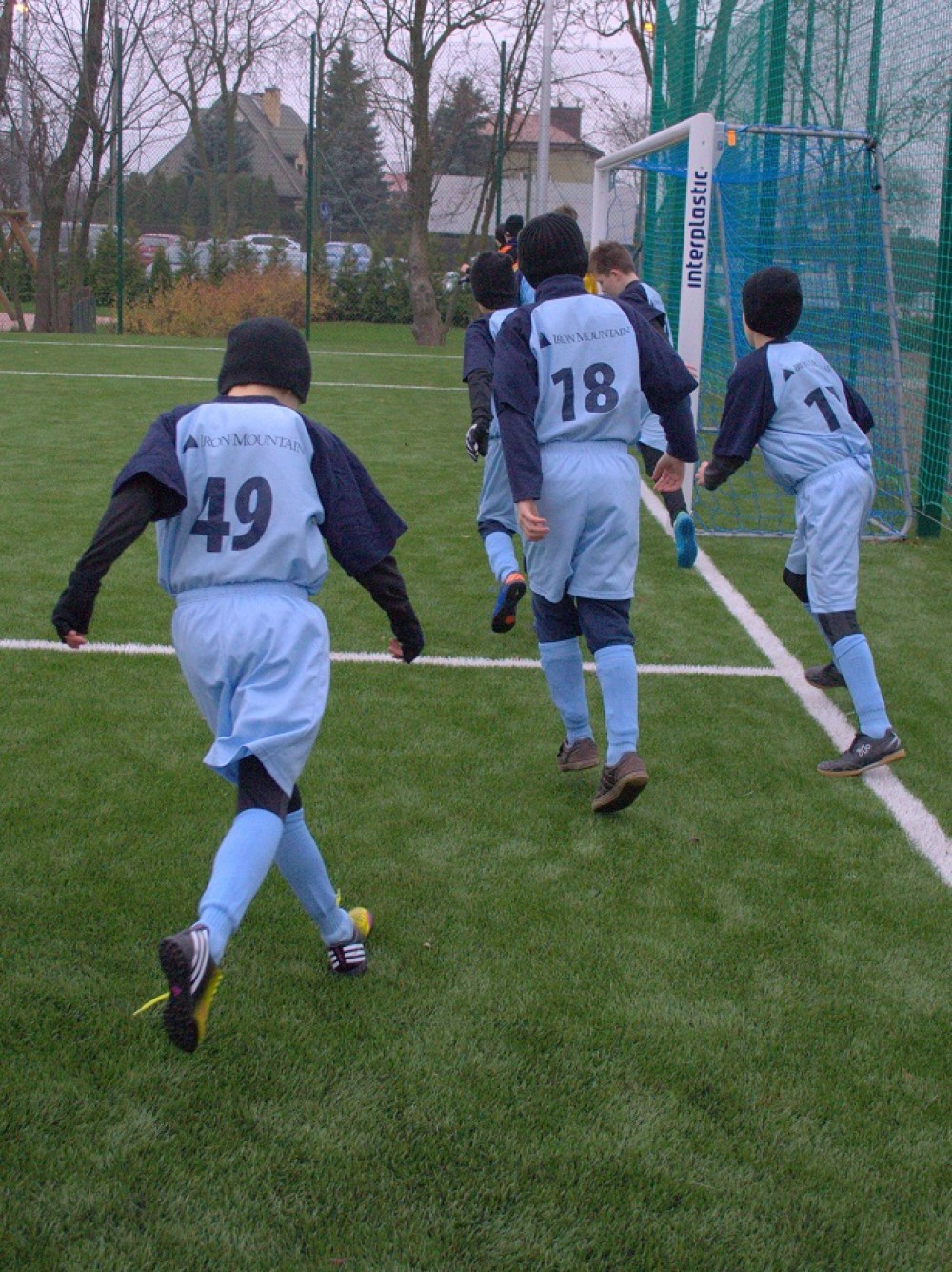 Pierwszy mecz na nowym boisku zakończył się zwycięstwem szóstoklasistów. Pokonali oni młodszą drużynę 3:1.