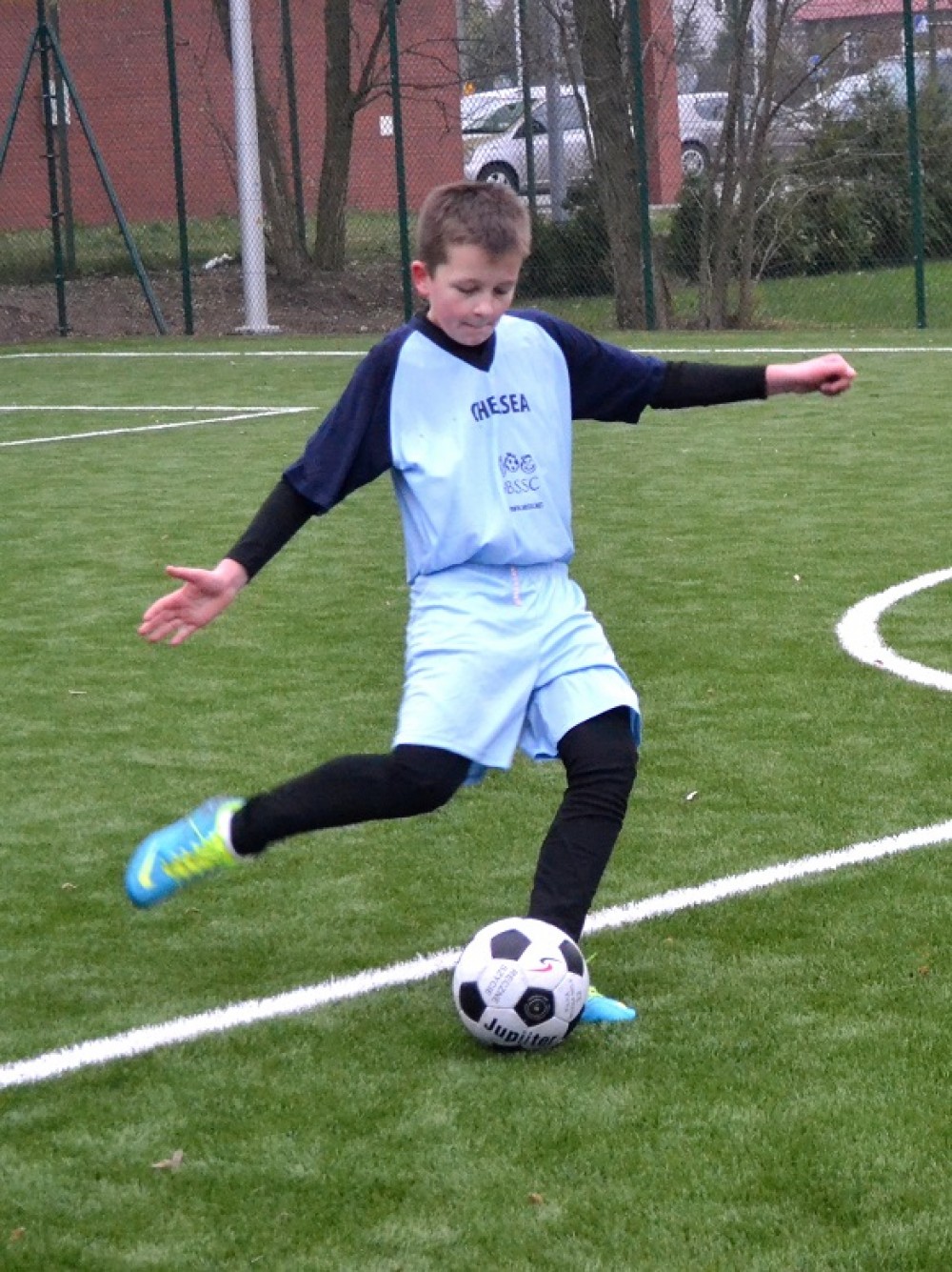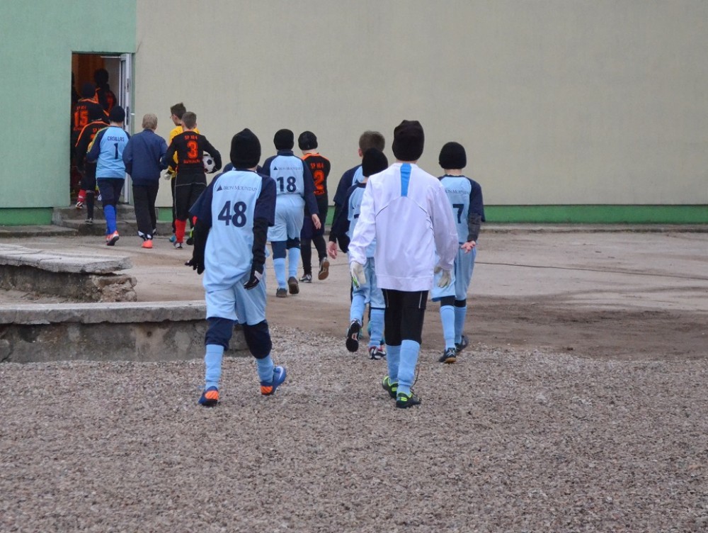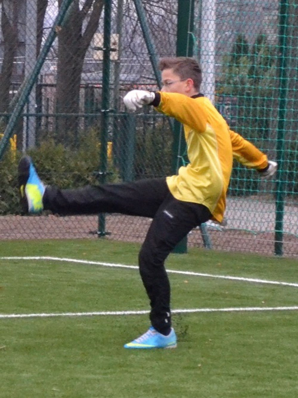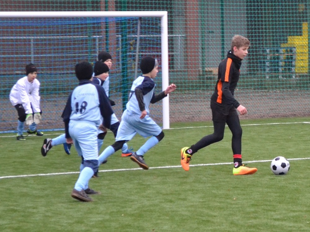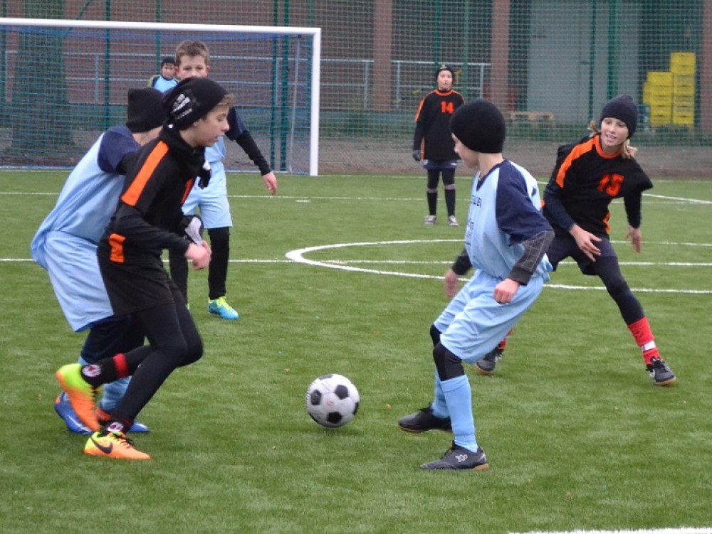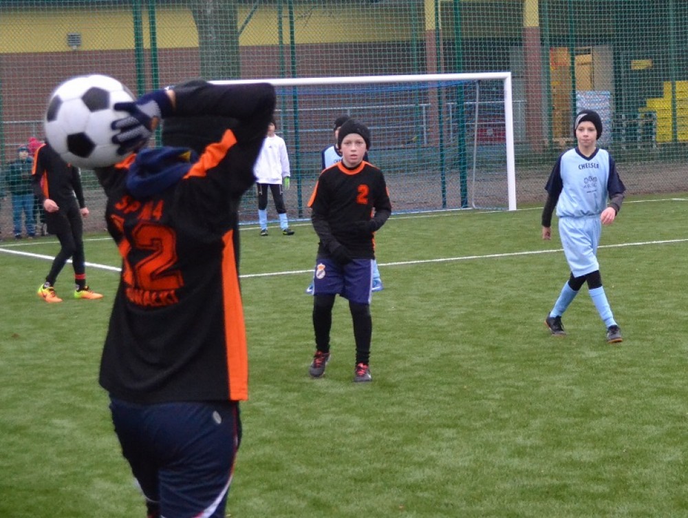 Pierwszy mecz na nowym boisku zakończył się zwycięstwem szóstoklasistów. Pokonali oni młodszą drużynę 3:1.