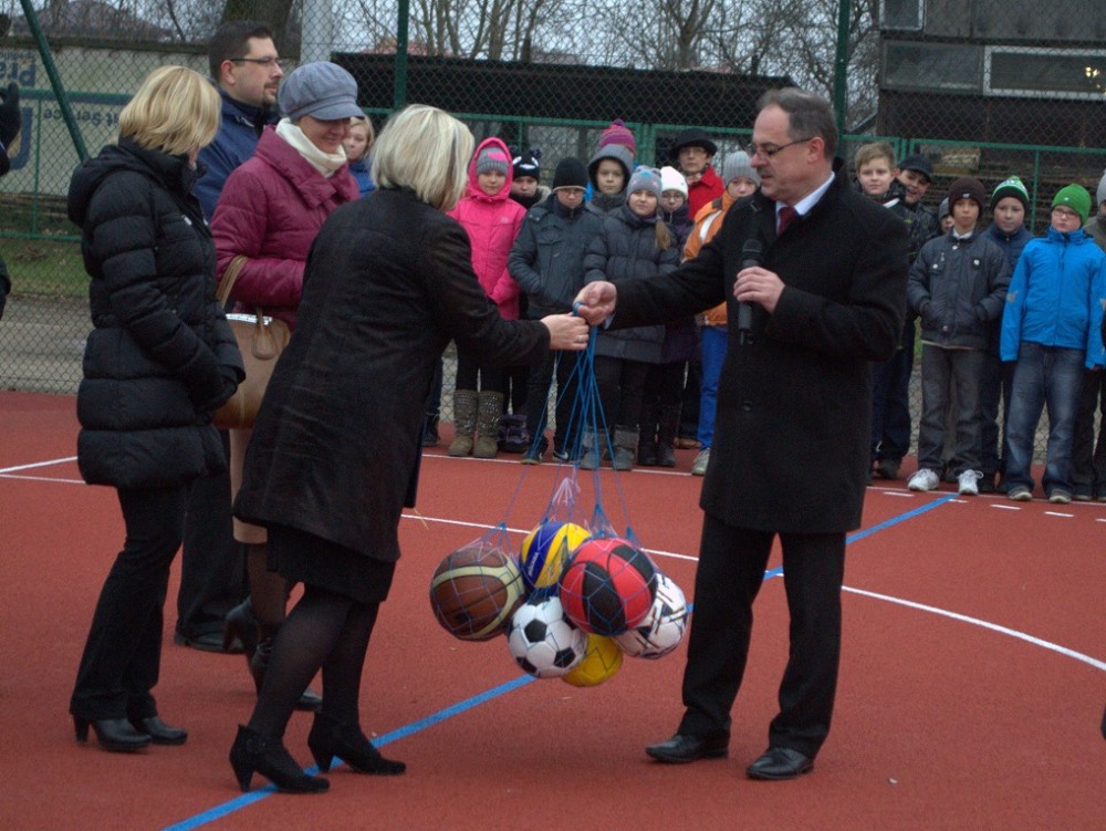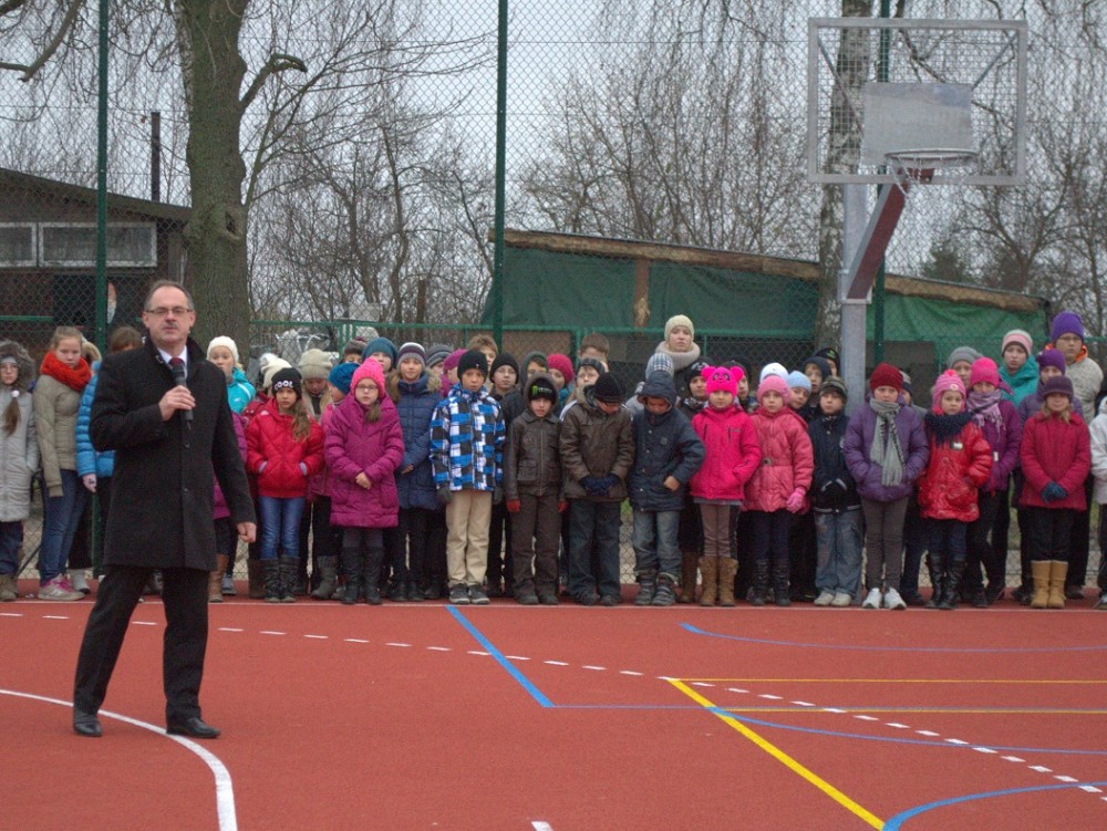 - Ten moment w końcu nastąpił - mówił Czesław Renkiewicz. Prezydent opowiadał też, że pamięta czasy gdy w tym miejscu nic nie było. Okolica ta w ostatnich latach wyraźnie się zmieniła. Na nowym skrzyżowaniu Wojska Polskiego i Sportowej zwiększył się ruch, a w sąsiedztwie szkoły powstał duży sklep spożywczy. Market sfinansował budowę skrzyżowania, parkingu oraz wysokiej siatki, która odgradza teren szkoły od przestrzeni pod sklepem. Urząd Miejski zlecił budowę części sportowej. - Boisko powstało dzięki staraniom dyrekcji i rodziców - podkreślał włodarz Suwałk. Dodał też, że w przyszłoroczny budżecie zaplanowano już środki na zagospodarowanie przestrzeni między boiskiem a szkołą. Przeznaczono na ten cel 380 tys. zł.