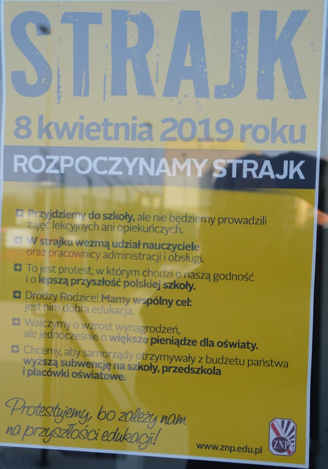 - Od 8 kwietnia w szkole strajk. Nie ma zajęć, nauczyciele nie bÄ™dÄ… prowadzić lekcji ani opiekować siÄ™ uczniami. W zwiÄ…zku z planowanym w dniu 8 kwietnia 2019 roku strajkiem szkolnym informujemy, iż w tym dniu nie bÄ™dzie przygotowany obiad w szkolnej stoÅ‚ówce – taki komunikat pojawiÅ‚ siÄ™ m.in. na stronie internetowej SzkoÅ‚y Podstawowej nr 6 w SuwaÅ‚kach.