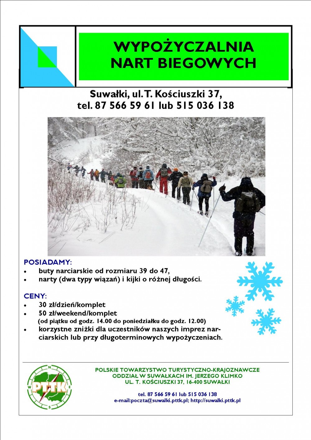 W suwalskim PTTK można wypożyczyć narty.