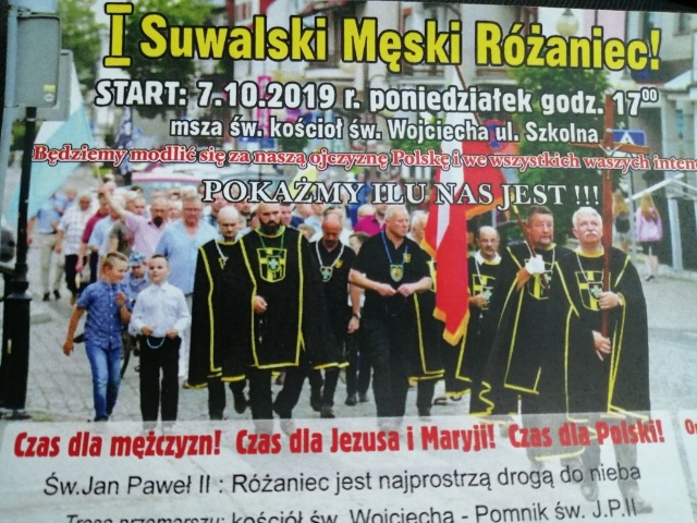 Zakon Rycerzy św. Jana Pawła II zaprasza mężczyzn małych i dużych, młodych i starszych na I Suwalski Męski Różaniec.