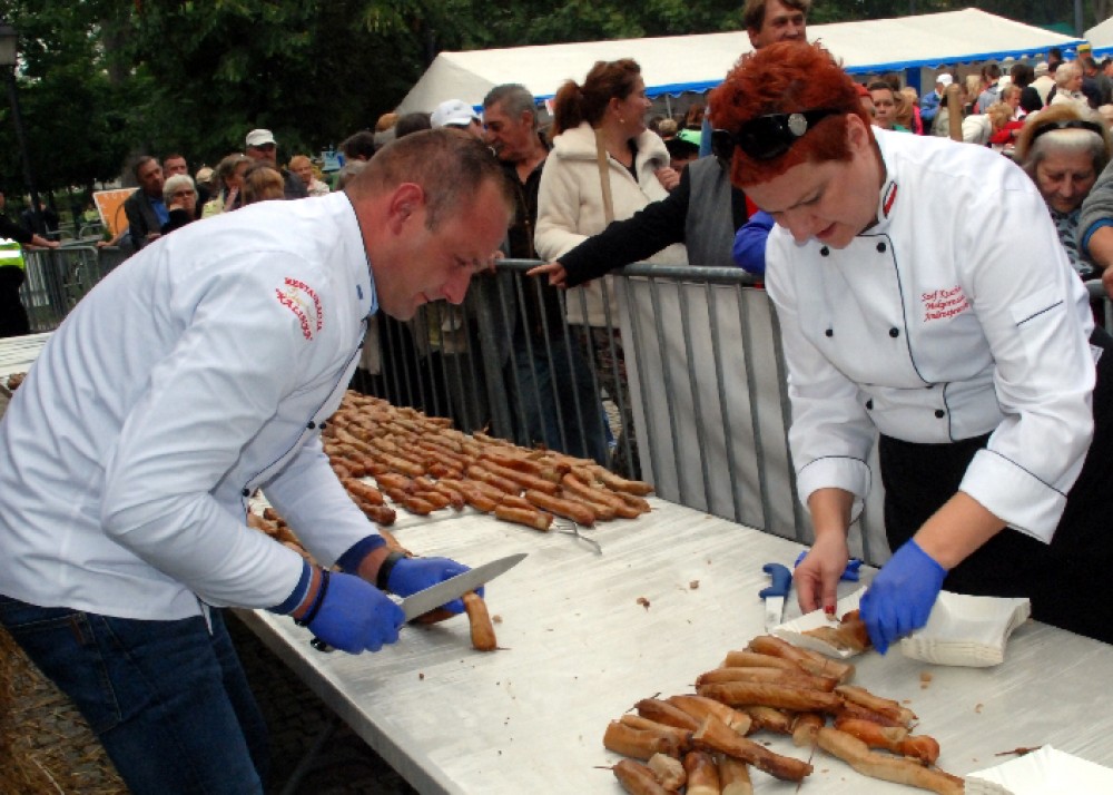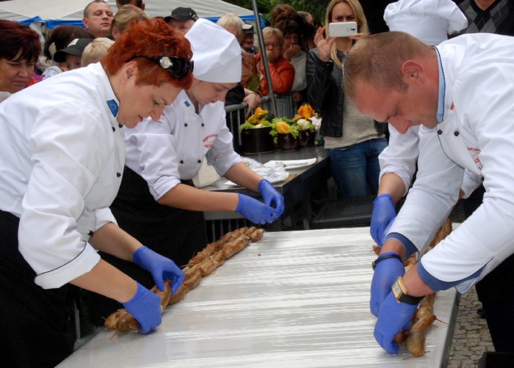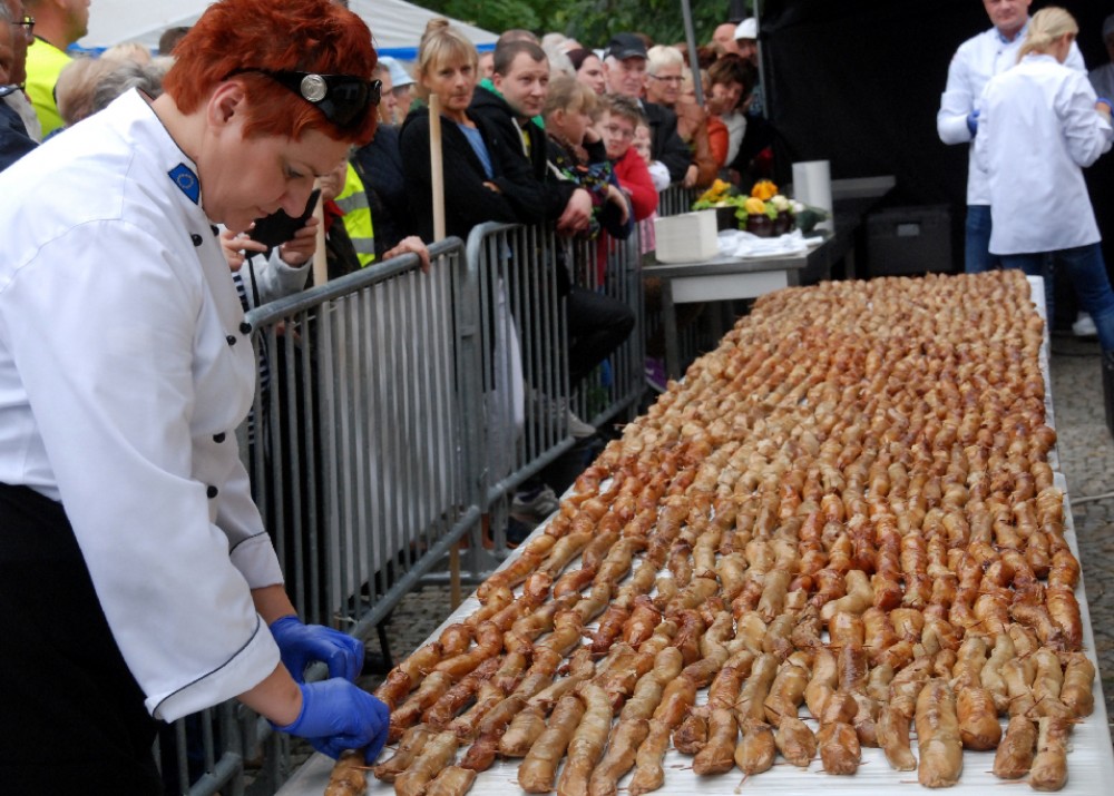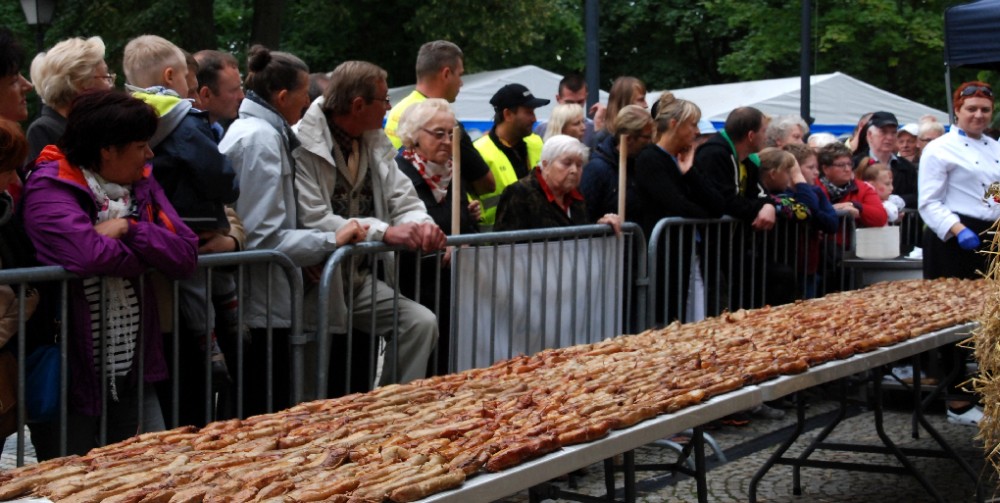 Międzynarodowy Konkurs Kulinarny „Sąsiedzi przy stole” przyciągnął do parku Konstytucji 3 Maja w Suwałkach tłumy ludzi. A królem spotkania był ziemniak, albo kartofel, jak mawia starsze pokolenie. Jedną z atrakcji była próba ustanowienia rekordu świata w długości pieczonej kiszki ziemniaczanej. Skończyło się na 135 metrach i 70 centymetrach i jest to nieoficjalny rekord. Nieoficjalny, bowiem próby nie zgłoszono do komisji Rekordów Guinnessa.