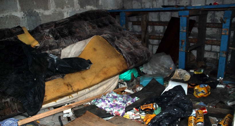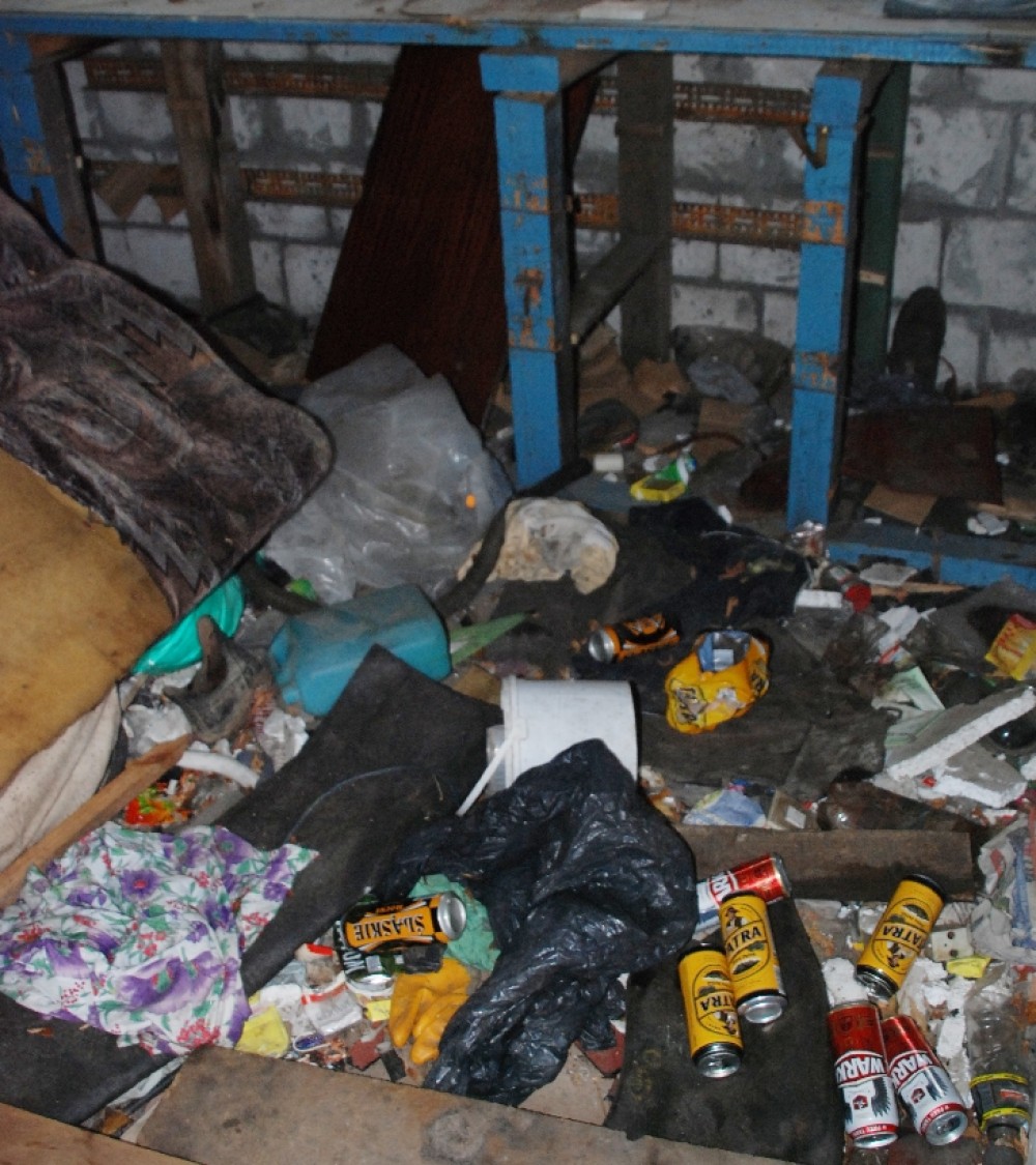 Na fot. Jedno z miejsc,w których w Suwałkach nocują bezdomni.