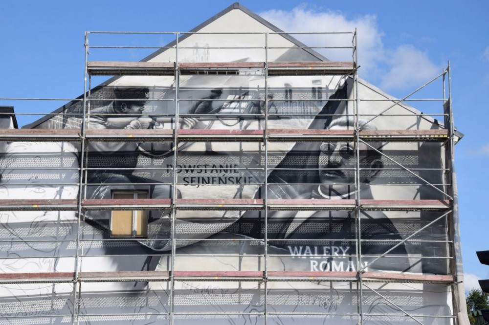 Autor projektu muralu, Piotr Topczyłko zaktualizował też pewne elementy przedstawiające Powstanie Sejneńskie oraz Pułk Strzelców Suwalskich.