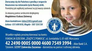 Zuzia jest podopieczną Fundacji Dzieciom „Zdążyć z Pomocą”, jej numer KRS: 0000037904.