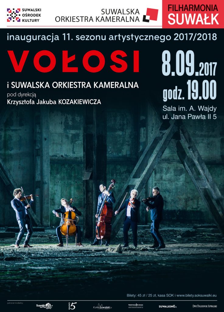 Gościem inauguracji 11. sezonu artystycznego Suwalskiej Orkiestry Kameralnej będzie kwintet Vołosi. Absolutnie oryginalni, energiczni, trochę – a może nawet trochę więcej – szaleni, klasyczno-folkowi, rockowo-jazzowi, wymykający się wszelkim klasyfikacjom. Vołosi to obietnica ekspresyjnej, muzycznej podróży z nutą karpackiej energii i góralskiego temperamentu.