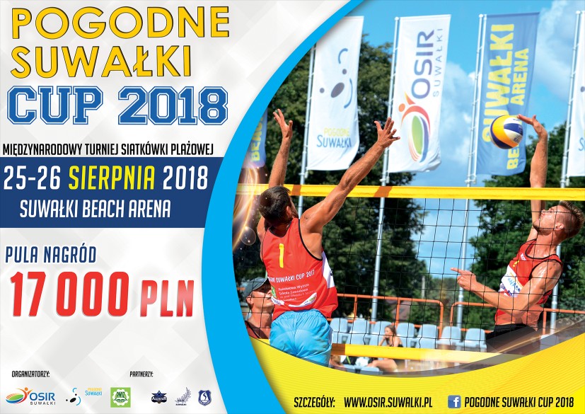 W sobotÄ™ od godziny 10:00 na SuwaÅ‚ki Beach Arena rozpocznie siÄ™ turniej siatkówki plażowej Pogodne SuwaÅ‚ki CUP. Rozgrywki, prowadzone systemem brazylijskim, zapowiadajÄ… siÄ™ niezwykle interesujÄ…co. Tegoroczna pula nagród to aż 17 tys. zÅ‚. Turniej rozegrany zostanie w kategorii OPEN.