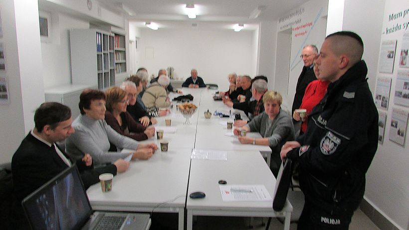 Przewodnim tematem rozmów byÅ‚o szeroko rozumiane bezpieczeÅ„stwo. Mundurowi poruszyli tematykÄ™, dotyczÄ…cÄ… oszustw na tzw. "wnuczka", „funkcjonariusza Policji" oraz „urzÄ™dnika", na które narażeni sÄ… szczególnie ludzie starsi. Funkcjonariusze przestrzegali, by nie ufać obcym, nieznajomych nie wpuszczać do domu i starać siÄ™ sprawdzać prawdziwość sÅ‚ów osoby, która do nas dzwoni lub puka. Radzili jak należy postÄ™pować i na co uważać, by nie paść ofiarÄ… oszustów i zÅ‚odziei.