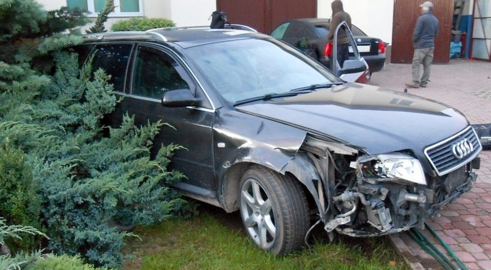 Z ustaleÅ„ celników i policjantów wynikaÅ‚o, że na jednej z prywatnych posesji w SuwaÅ‚kach może być magazynowana duża partia nielegalnych papierosów. Funkcjonariusze wkroczyli na jej teren zaskakujÄ…c 23-letniego mężczyznÄ™, który zasiadaÅ‚ za kierownica osobowego audi. Na widok mundurowych kierowca próbowaÅ‚ uciekać samochodem taranujÄ…c drzwi garażu i uszkadzajÄ…c stojÄ…ce na posesji inne auto. Próba ucieczki zakoÅ„czyÅ‚a siÄ™ jednak na stojÄ…cym na podwórzu drzewie.