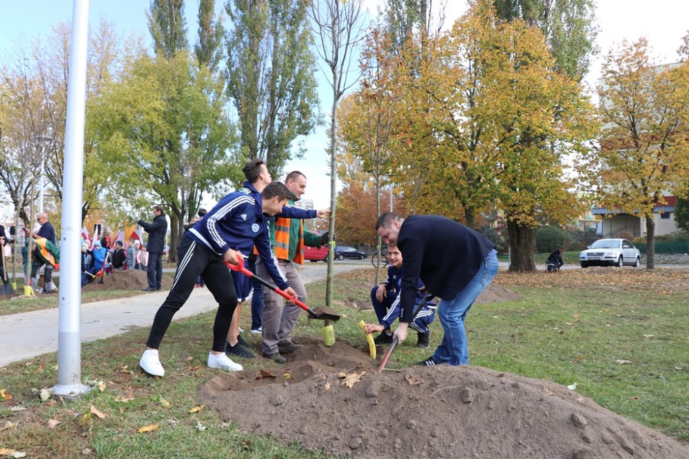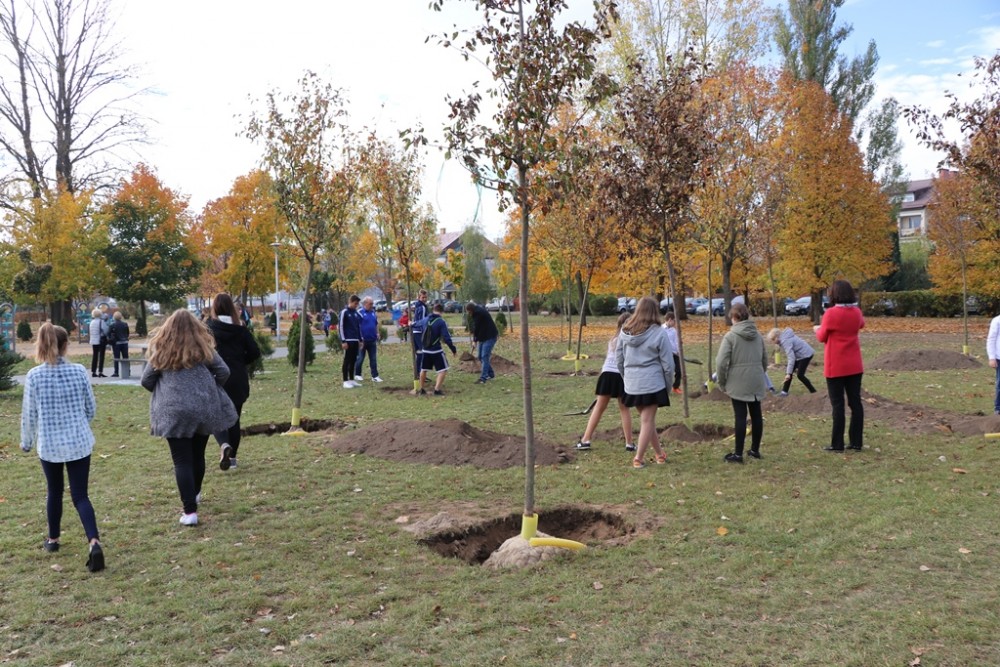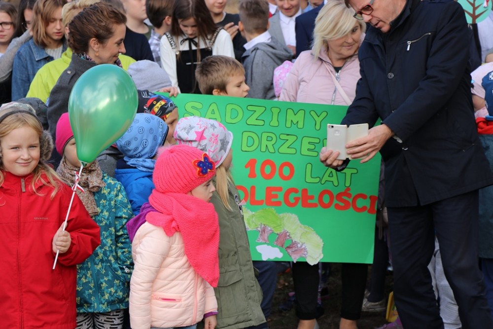 Wyjątkowo i pożytecznie świętowano we wtorek w Suwałkach 100-lecie niepodległości Polski. Na skwerze u zbiegu ulic Andersa i Putry dzieci z Przedszkola nr 8, uczniowie Szkoły Podstawowej nr 7, samorządowcy, ludzie kultury i sportu oraz pracownicy Zarządu Dróg i Zieleni wspólnie posadzili 100 drzew. Od dziś na skwerze rosną lipy drobnolistne, jarząby, klony, jabłonie ozdobne i jesiony wyniosłe.