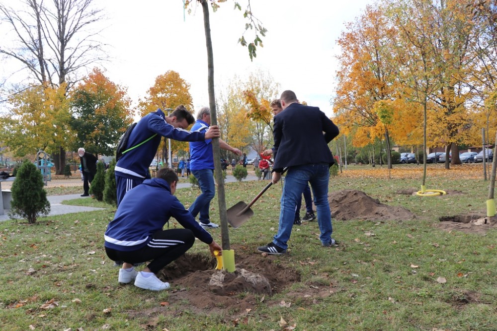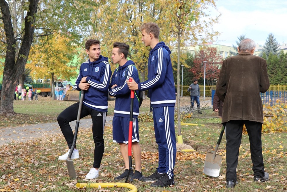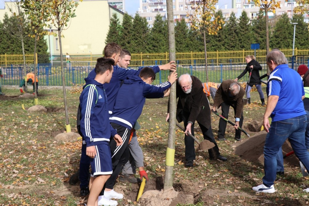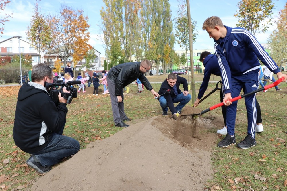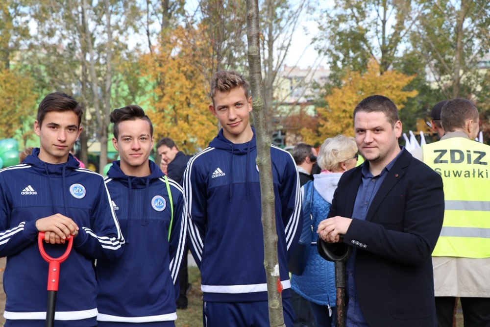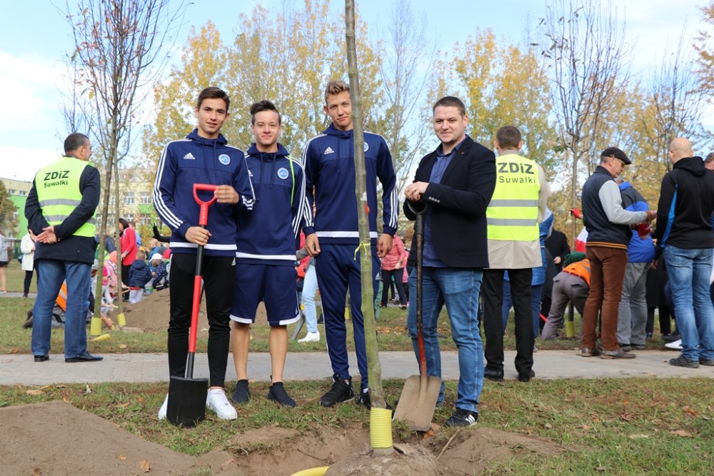 Drzewa sadzili także piłkarze pierwszoligowych Wigier Suwałki: Jakub Staszkiewicz, Adrian Niewulis i Patryk Ołów z prezesem klubu Sylwestrem Cimochowskim na czele. Posadzili kilka sztuk jarzębin i rajskich jabłoni.