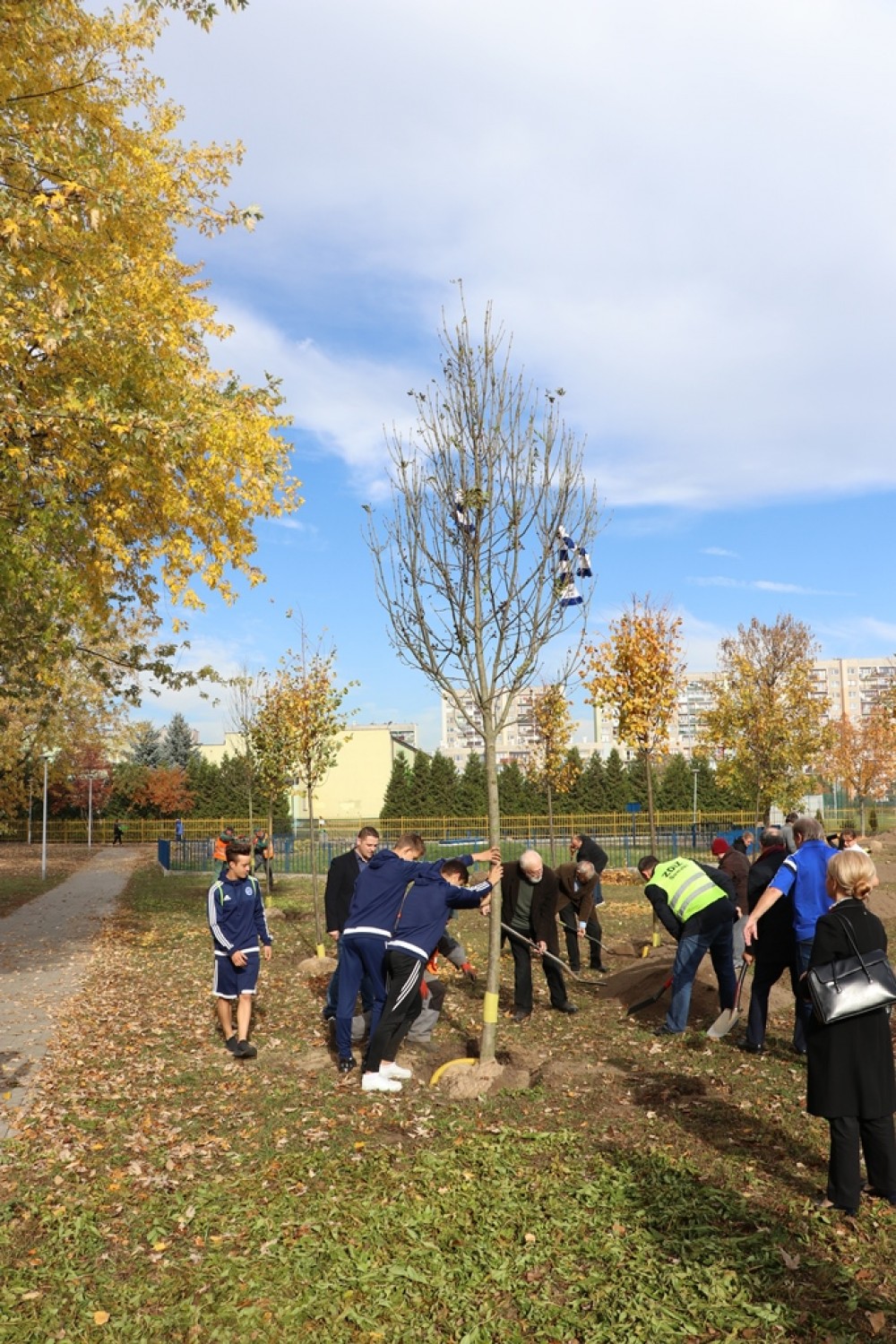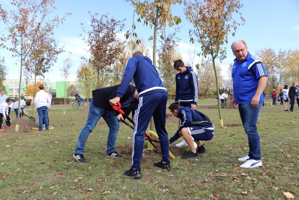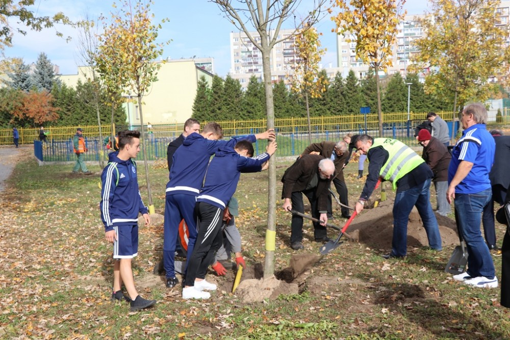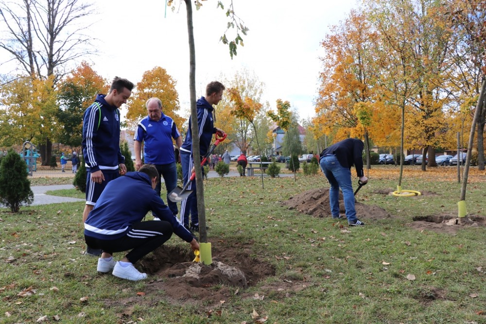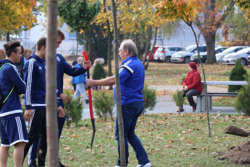 Drzewa sadzili także piłkarze pierwszoligowych Wigier Suwałki: Jakub Staszkiewicz, Adrian Niewulis i Patryk Ołów z prezesem klubu Sylwestrem Cimochowskim na czele. Posadzili kilka sztuk jarzębin i rajskich jabłoni.
