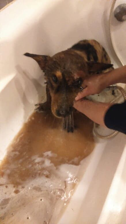 Pies został wykąpany, nakarmiony i przebadany przez weterynarzy. Poszukiwany jest jego właściciel, bo zwierzą ma obrożę.