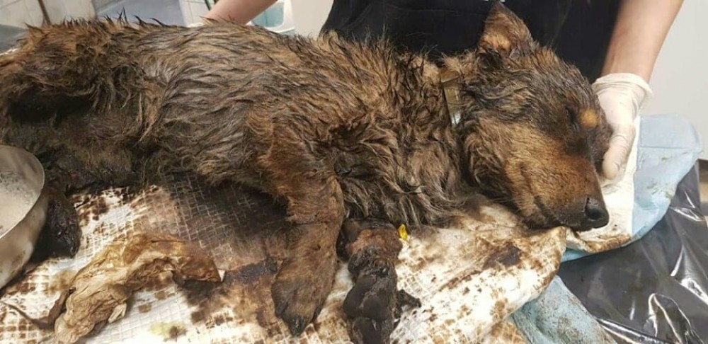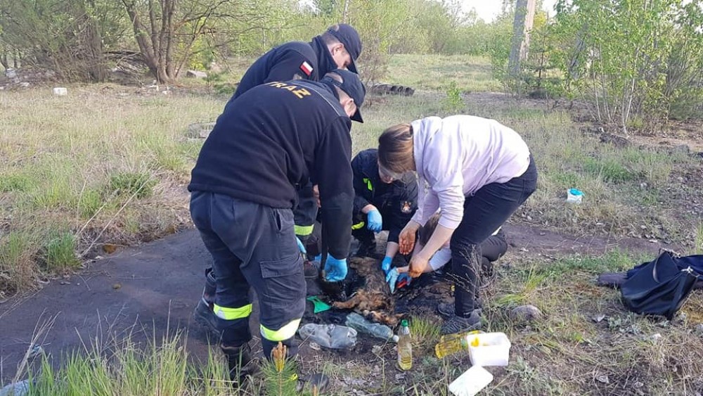 Dzięki sprawnej akcji wolontariuszy z Fundacji „Zwierzęta Niczyje” w Suwałkach oraz strażaków udało się uratować psa, który przykleił się do masy asfaltowej w pobliżu ulicy Piaskowej w Suwałkach. Zwierzę dochodzi do siebie. Potrzebuje leczenia.