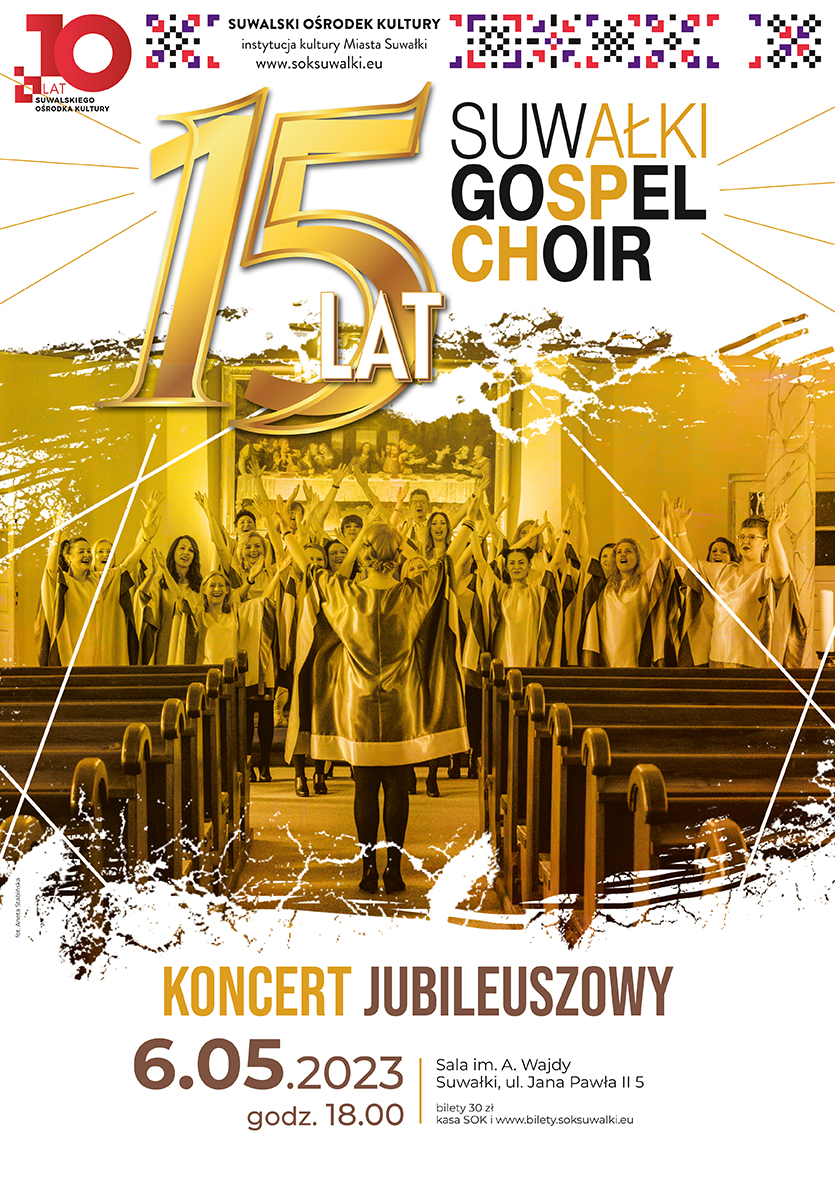 W maju czeka nas wyjątkowe wydarzenie, będziemy świętować 15-lecie zespołu Suwałki Gospel Choir, który działa w Suwalskim Ośrodku Kultury pod kierunkiem Anny Szafranowskiej. 6 maja o godzinie 18.00 zapraszamy na uroczysty koncert, który odbędzie się Sali im. Andrzeja Wajdy Suwalskiego Ośrodka Kultury.