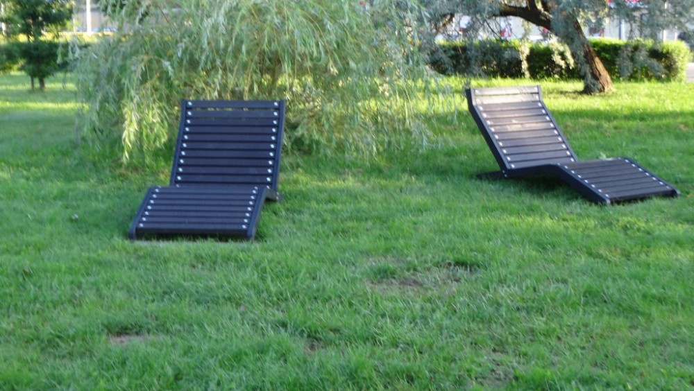 Na skwerze ułożono nowe ściezki pieszo-rowerowe, są nowe drzewa, krzewy oraz ławki, w tym jedna solarna, miejsca do parkowania rowerów, a nawet dwa leżaki.