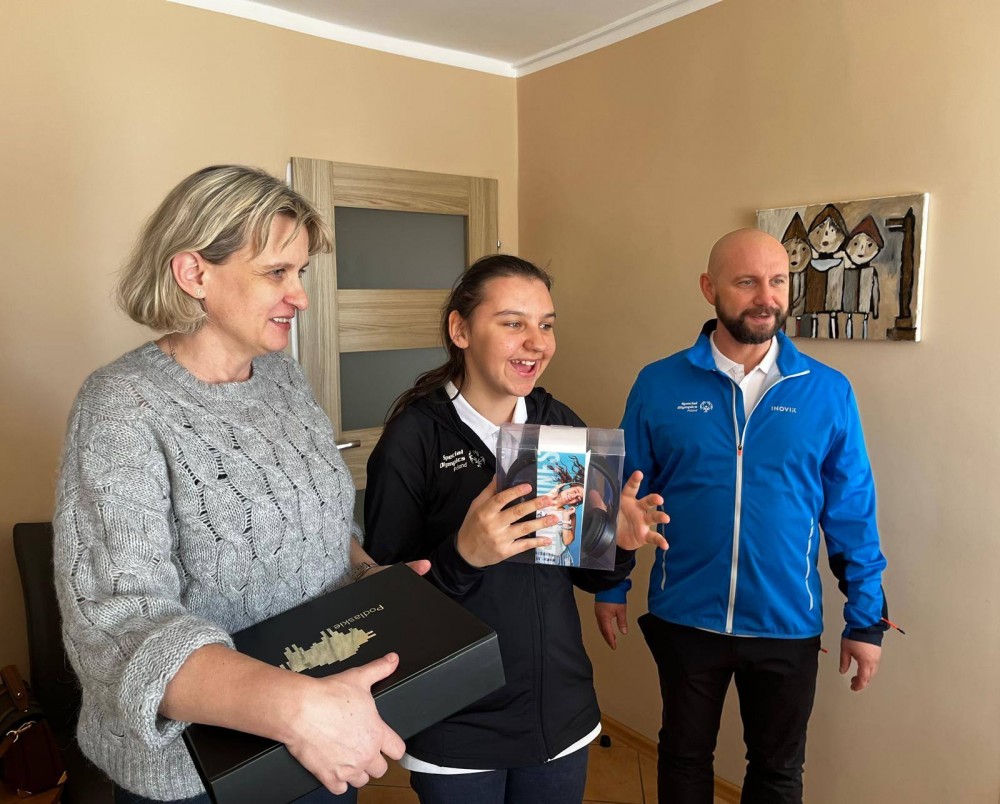 Podopieczna trenera Adama Ołowniuka otrzymała z rąk Anny Naszkiewicz pamiątkowy grawerton i upominki przekazane przez Zarząd Województwa Podlaskiego.
