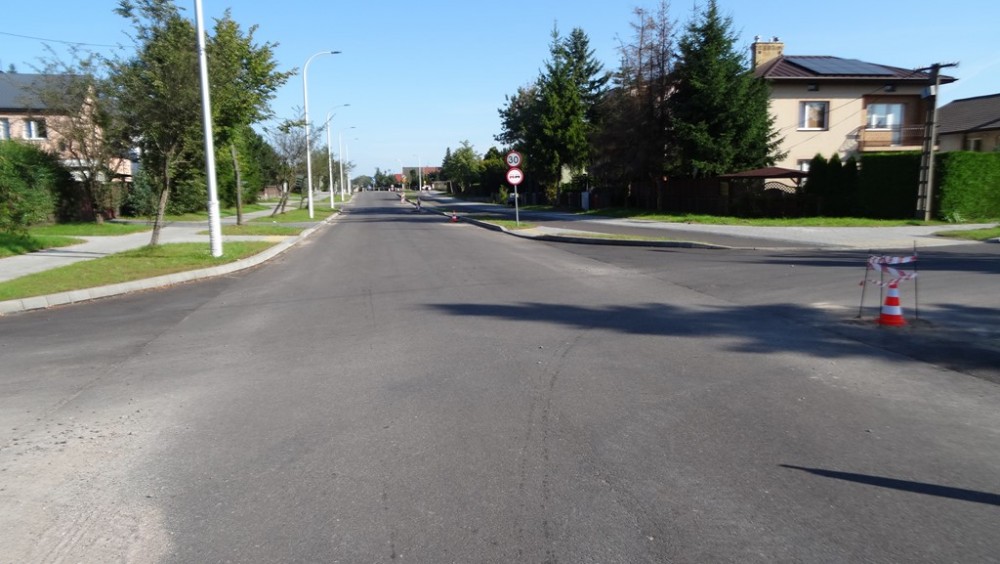 Dalej prace są jeszcze bardziej zaawansowane. Jest długi odcinek ulicy już z asfaltem, są chodniki, asfaltowa droga rowerowa, a na skrzyżowaniu z ulicą Powstańców Śląskich prawie gotowe spore rondo.