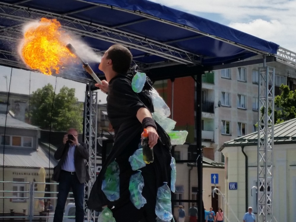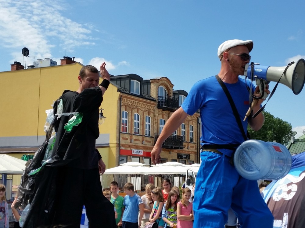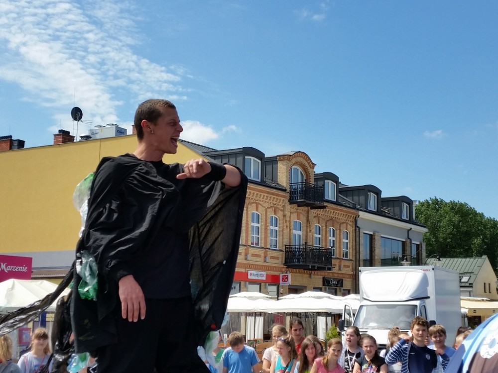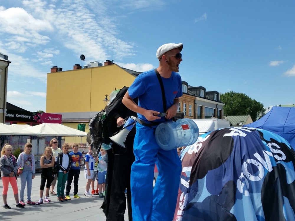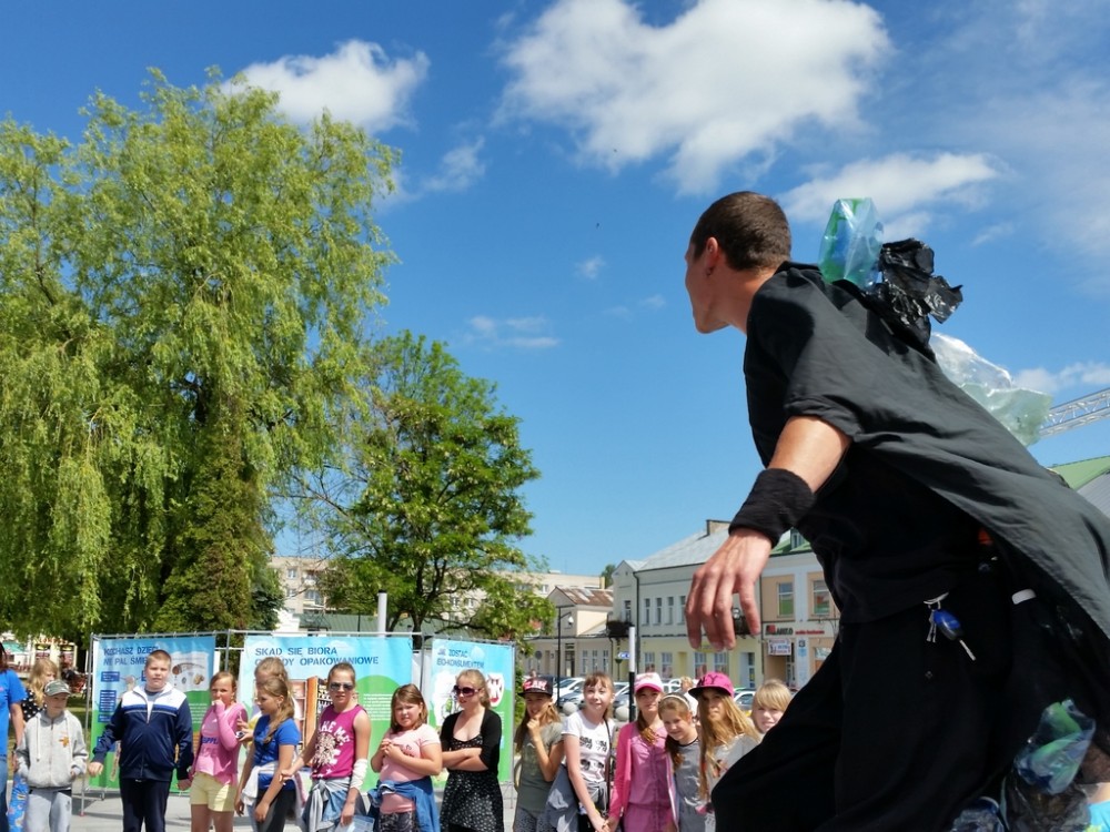 Pierwszego dnia festynu odbyÅ‚o siÄ™ również przedstawienie, w którym czynnÄ… rolÄ™ odegrali mÅ‚odzi uczestnicy warsztatów. Aktorzy na szczudÅ‚ach odegrali scenki podczas, których zaprezentowali szkodliwe konsekwencje spalania Å›mieci.