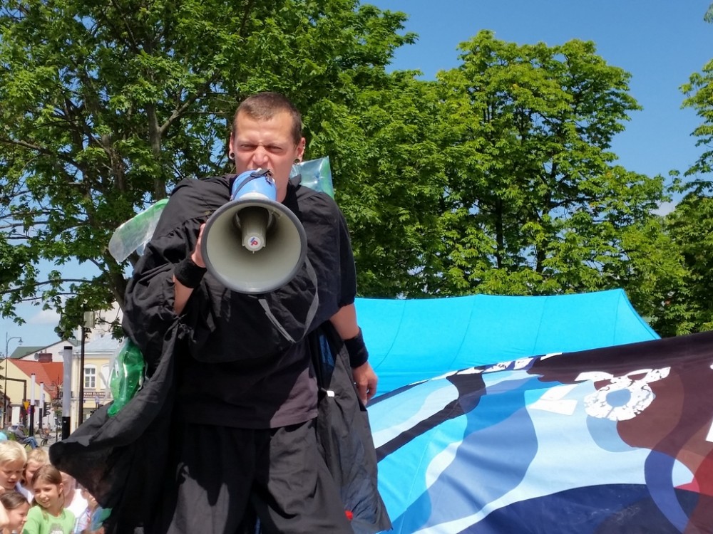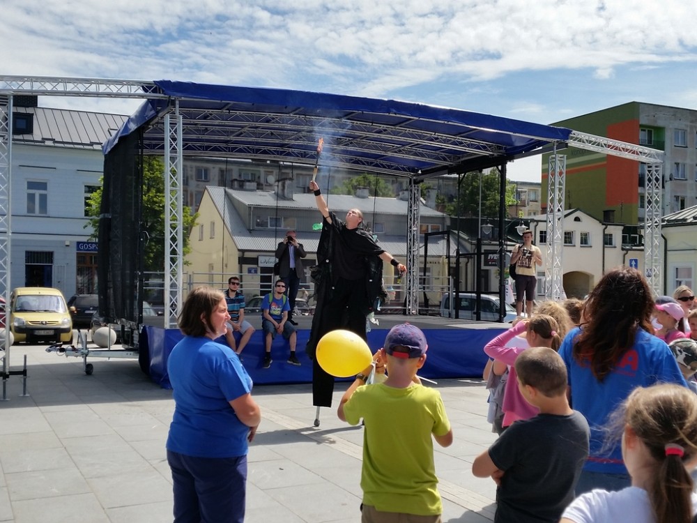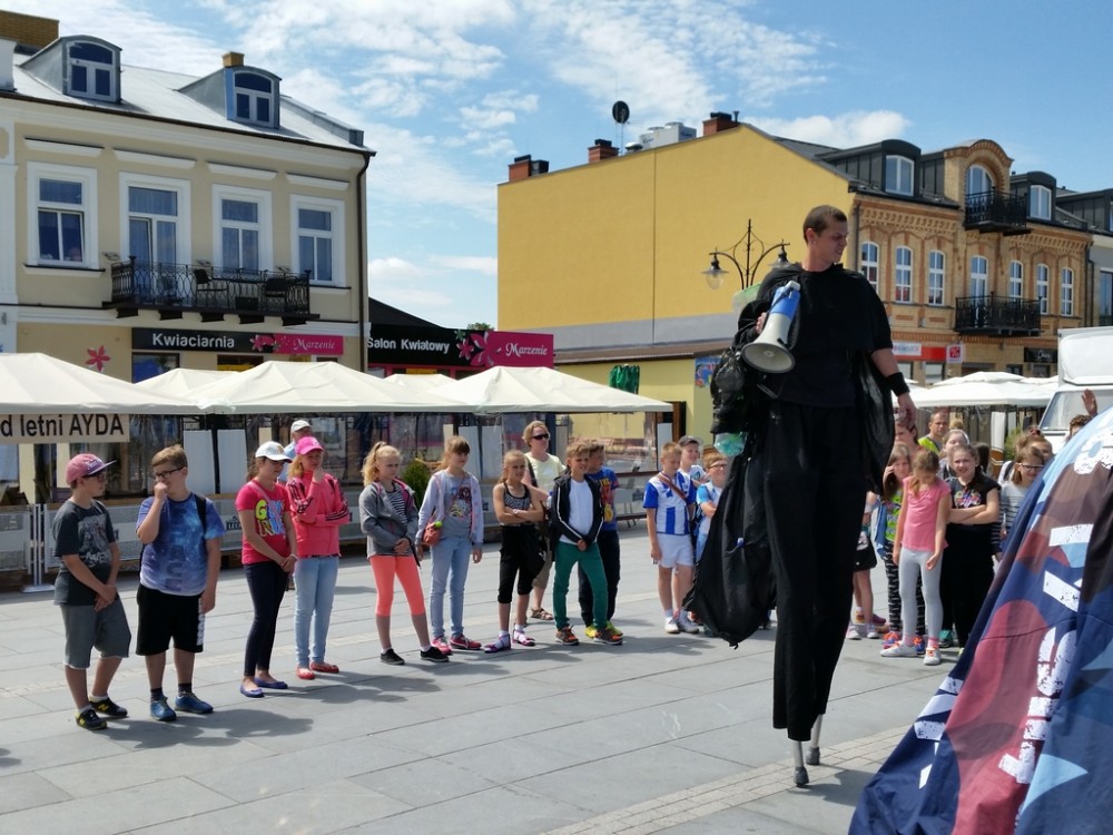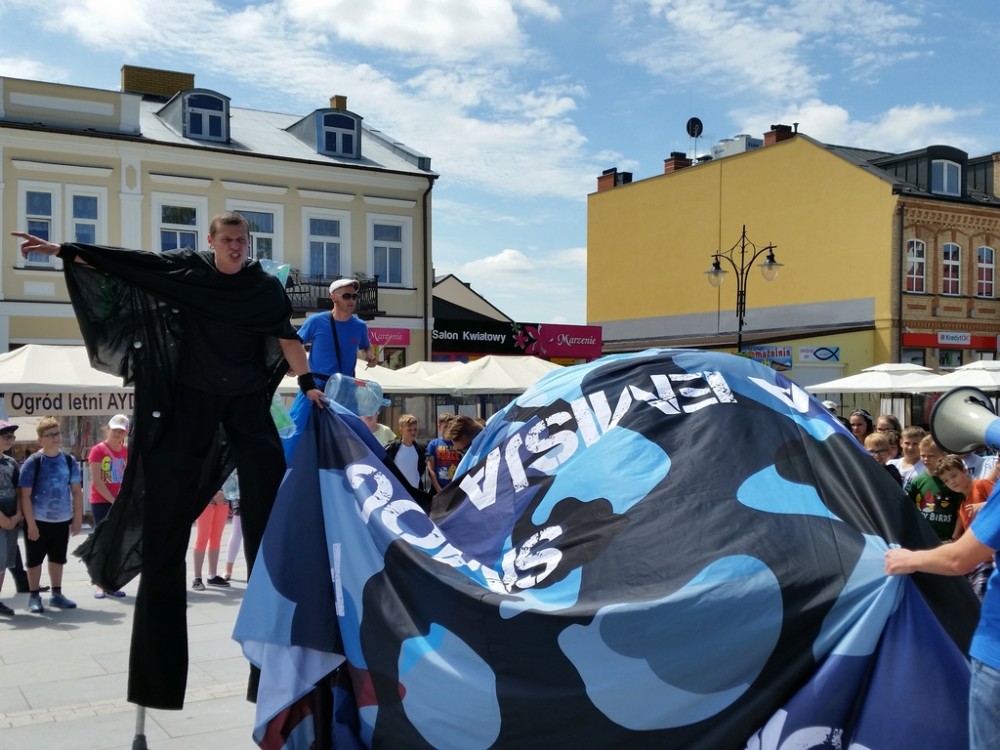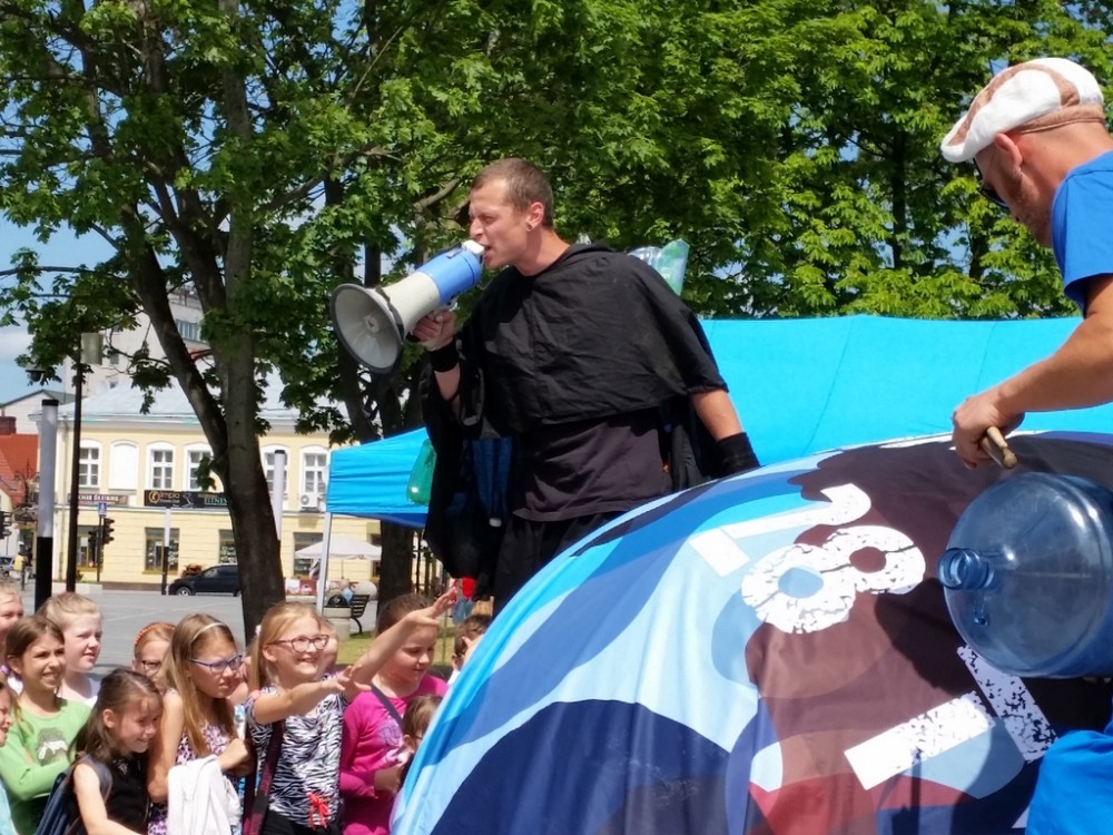 Pierwszego dnia festynu odbyÅ‚o siÄ™ również przedstawienie, w którym czynnÄ… rolÄ™ odegrali mÅ‚odzi uczestnicy warsztatów. Aktorzy na szczudÅ‚ach odegrali scenki podczas, których zaprezentowali szkodliwe konsekwencje spalania Å›mieci.