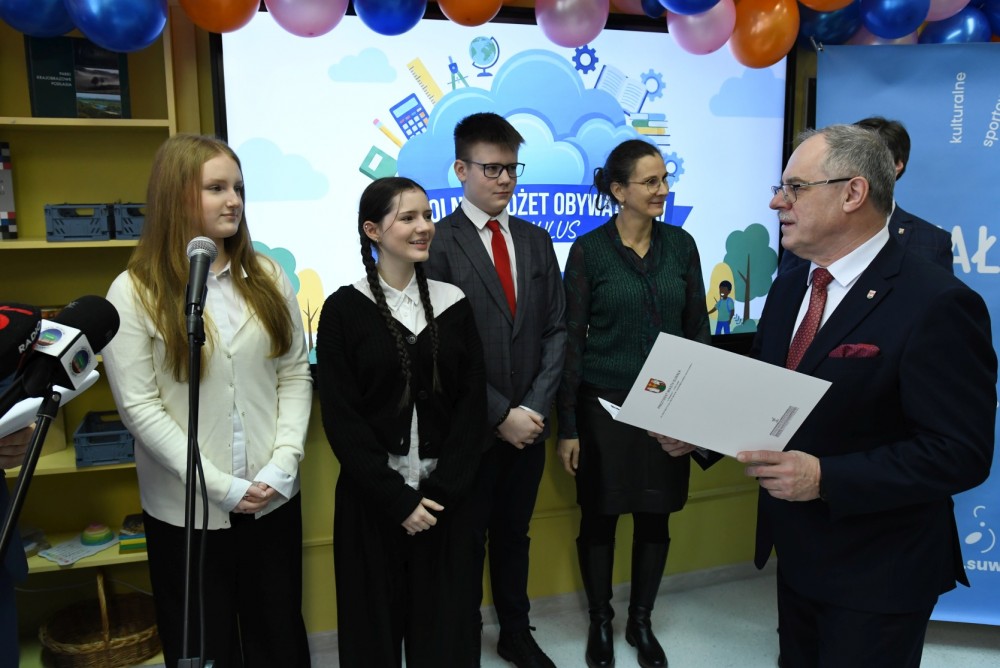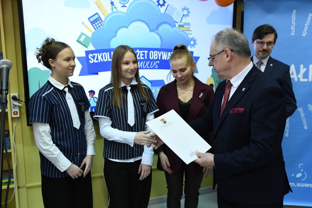 - Szkolny Budżet Obywatelski ma uczyć od najmłodszych lat postaw obywatelskich i naszego zaangażowania w życie społeczne. Zdaliście ten test na przysłowiową „6”. Frekwencja w głosowaniu na zgłoszone projekty była lepsza niż rok temu i wyniosła blisko 70%. W niektórych było to ponad 90%. Dziękuję za udział i mam nadzieję, że ta forma przyjmie się już na stałe – mówił do uczniów Czesław Renkiewicz, Prezydent Suwałk.