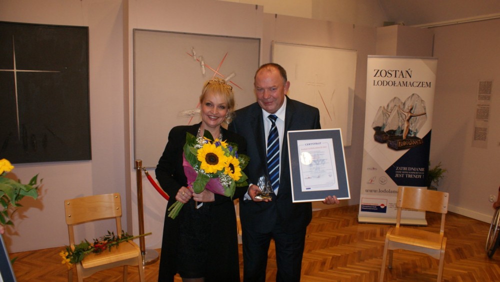 Leszek Lewoc odebrał nagrodę podczas Kujawsko-Pomorskiej Regionalnej Gali Jubileuszowej w Bydgoszczy, z rąk Adrianny Biedrzyńskiej, która jest jednym z ambasadorów Konkursu.