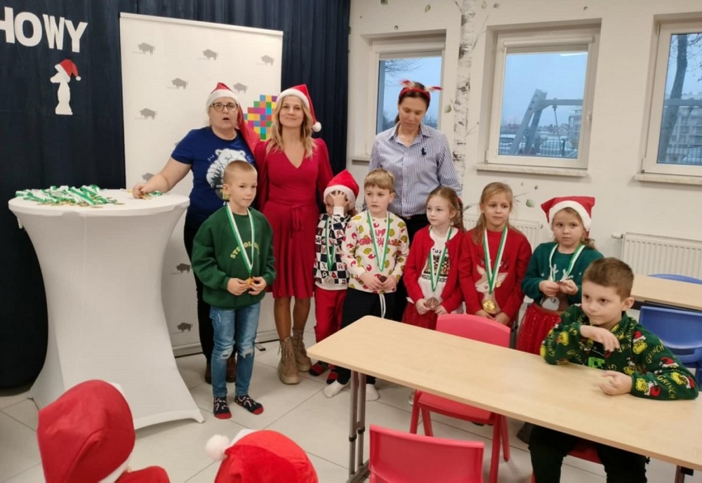 Z okazji turnieju został przygotowany słodki poczęstunek, każde dziecko otrzymało pamiątkowy medal oraz świąteczną czapkę.
