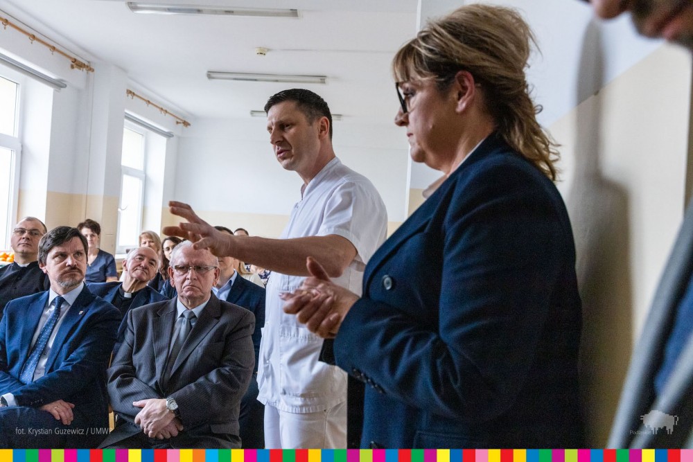 – Jestem tutaj z wami od początku, bo jest to dla mnie ogromnie ważne święto. Będąc w suwalskim szpitalu, zauważam niezwykłą dbałość nie tylko jeśli chodzi o sprzęty, ale także elementy wystroju, niewątpliwie wpływające na rekonwalescencję pacjentów. Dziś składam na ręce pani dyrektor podziękowania wszystkim pracownikom i szczere gratulacje– powiedziała Wiesława Burnos.
