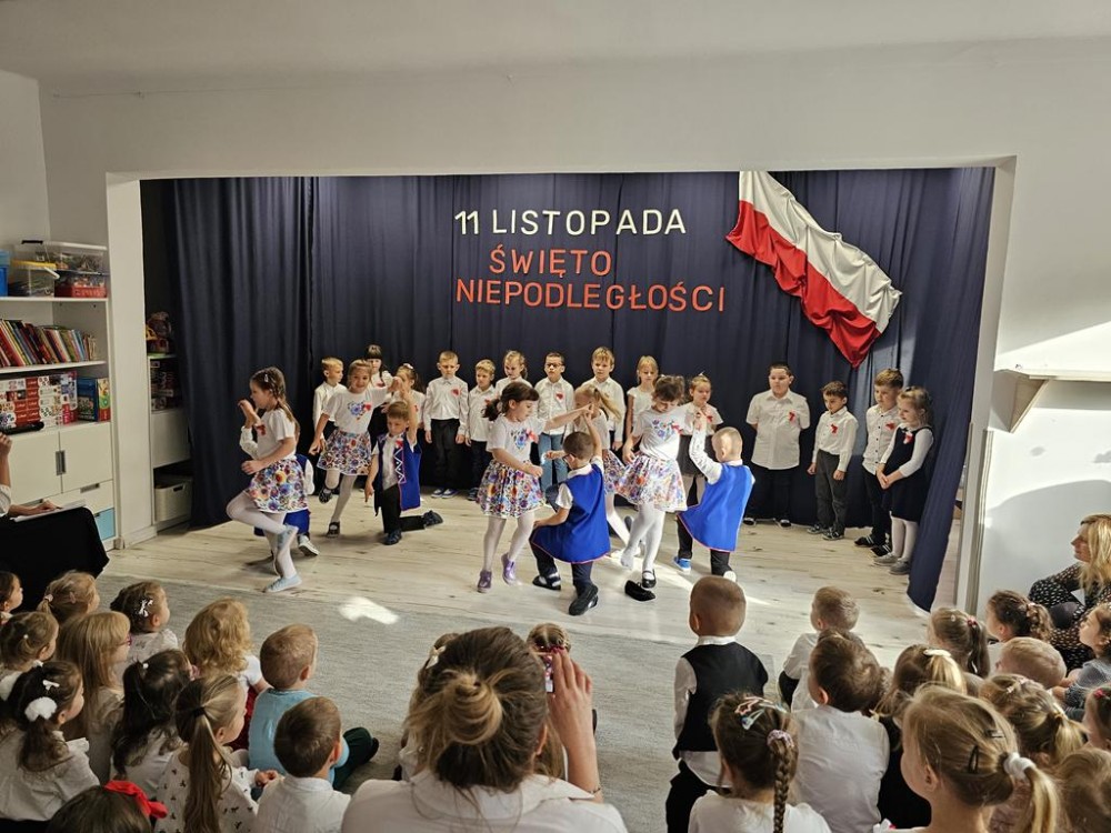 Dzieci z grupy Fioletowej Przedszkola nr 7 w Suwałkach podczas obchodów Dla Niepodległej wystąpiły z takim przesłaniem:
