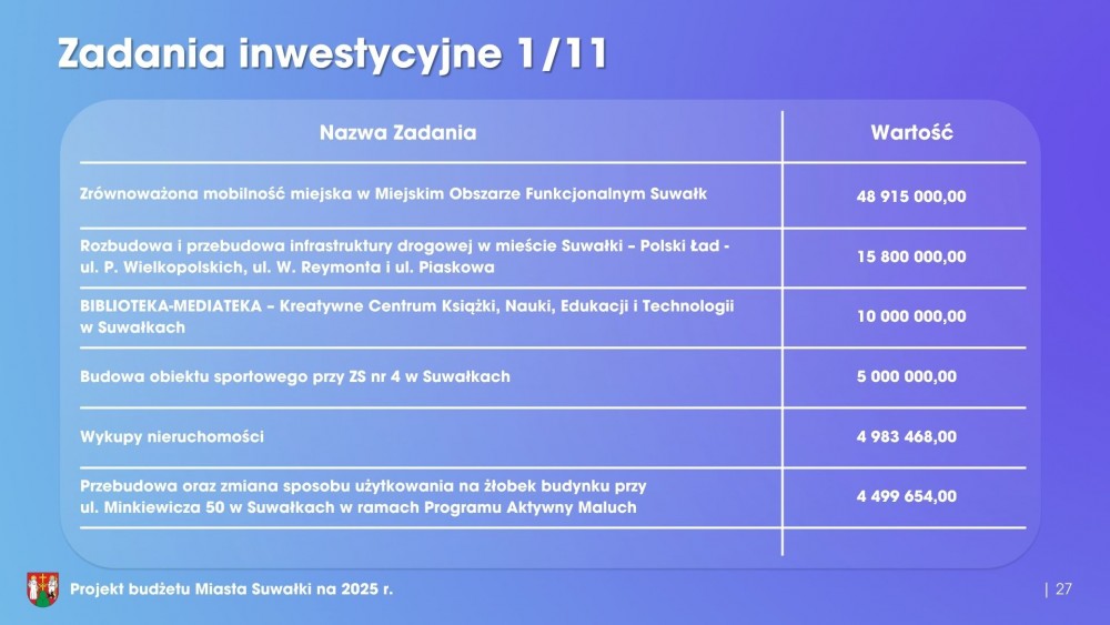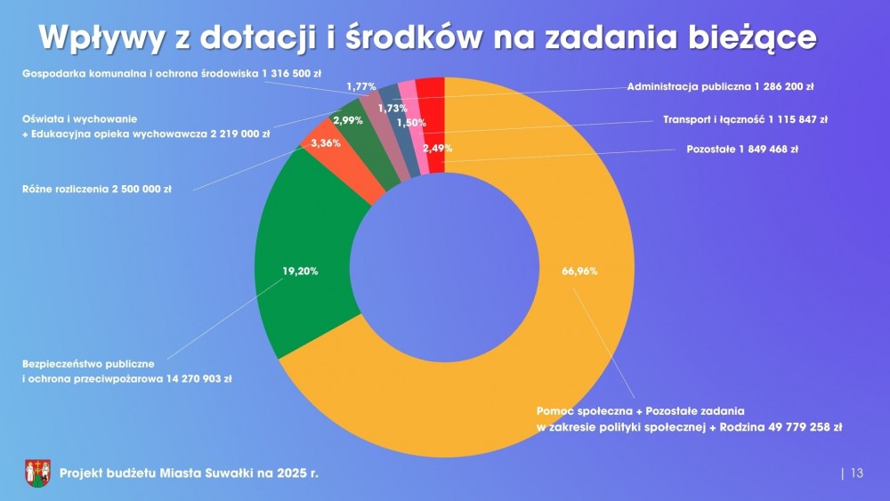 PrzyszÅ‚oroczny budżet SuwaÅ‚k zostaÅ‚ opracowany w oparciu o nowÄ… ustawÄ™ o dochodach samorzÄ…dów terytorialnych. DziÄ™ki nowym przepisom, dochody naszego miasta majÄ… być wyższe „na czysto” o 25 mln zÅ‚.