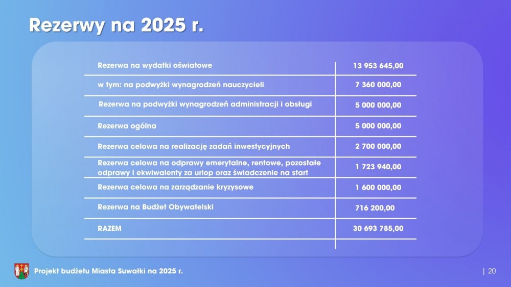 Podczas dyskusji nad projektem, padÅ‚o dużo sÅ‚ów o tym, że najważniejsze inwestycje, to te w kapitaÅ‚ ludzki. JarosÅ‚aw SchabieÅ„ski, radny opozycyjnego klubu Prawa i SprawiedliwoÅ›ci, dopominaÅ‚ siÄ™ w zwiÄ…zku z tym wiÄ™kszych, niż planowane 7-procentowe, podwyżek dla pracowników miejskich instytucji. W SuwaÅ‚kach sÄ… takie miejskie placówki, w których polowa pracowników otrzymuje place minimalnÄ… – zauważyÅ‚.