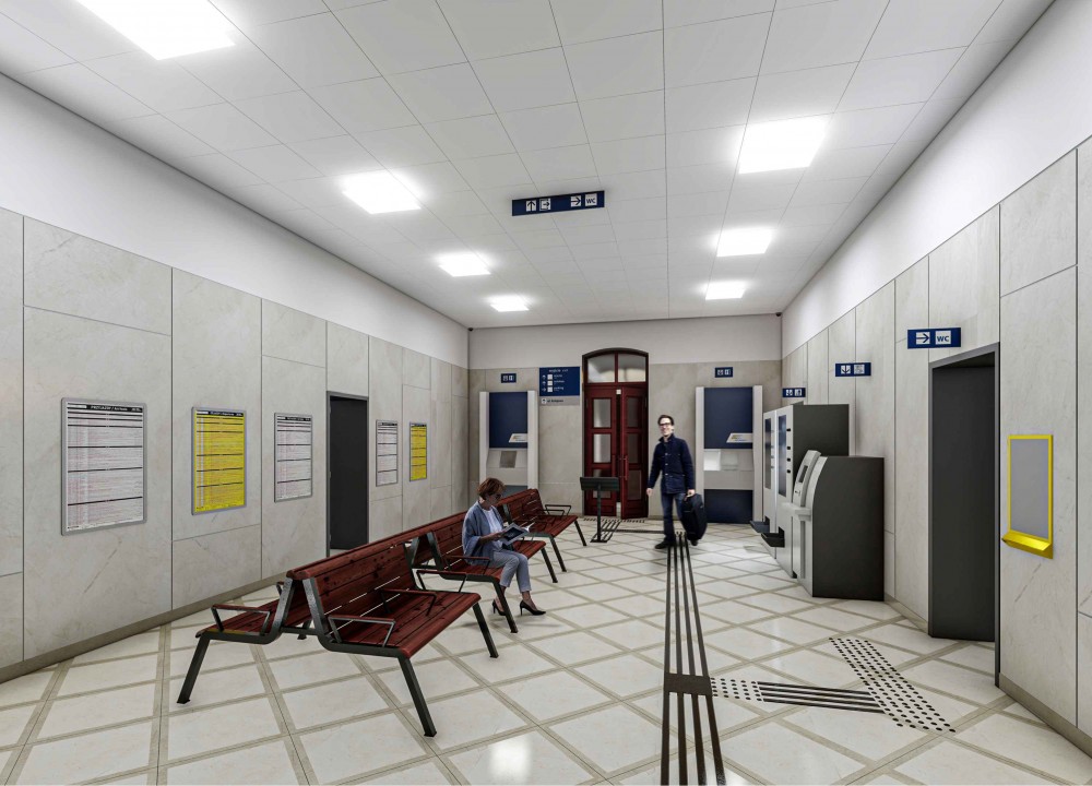 W centralnej części dworca powstanie nowoczesna poczekalnia dla podróżnych, wraz z ogólnodostÄ™pnymi toaletami, przystosowanymi do potrzeb osób z niepeÅ‚nosprawnoÅ›ciami. W poczekalni bÄ™dÄ… także elektroniczne wyÅ›wietlacze przyjazdów i odjazdów pociÄ…gów oraz miejsca przeznaczone pod biletomaty.
